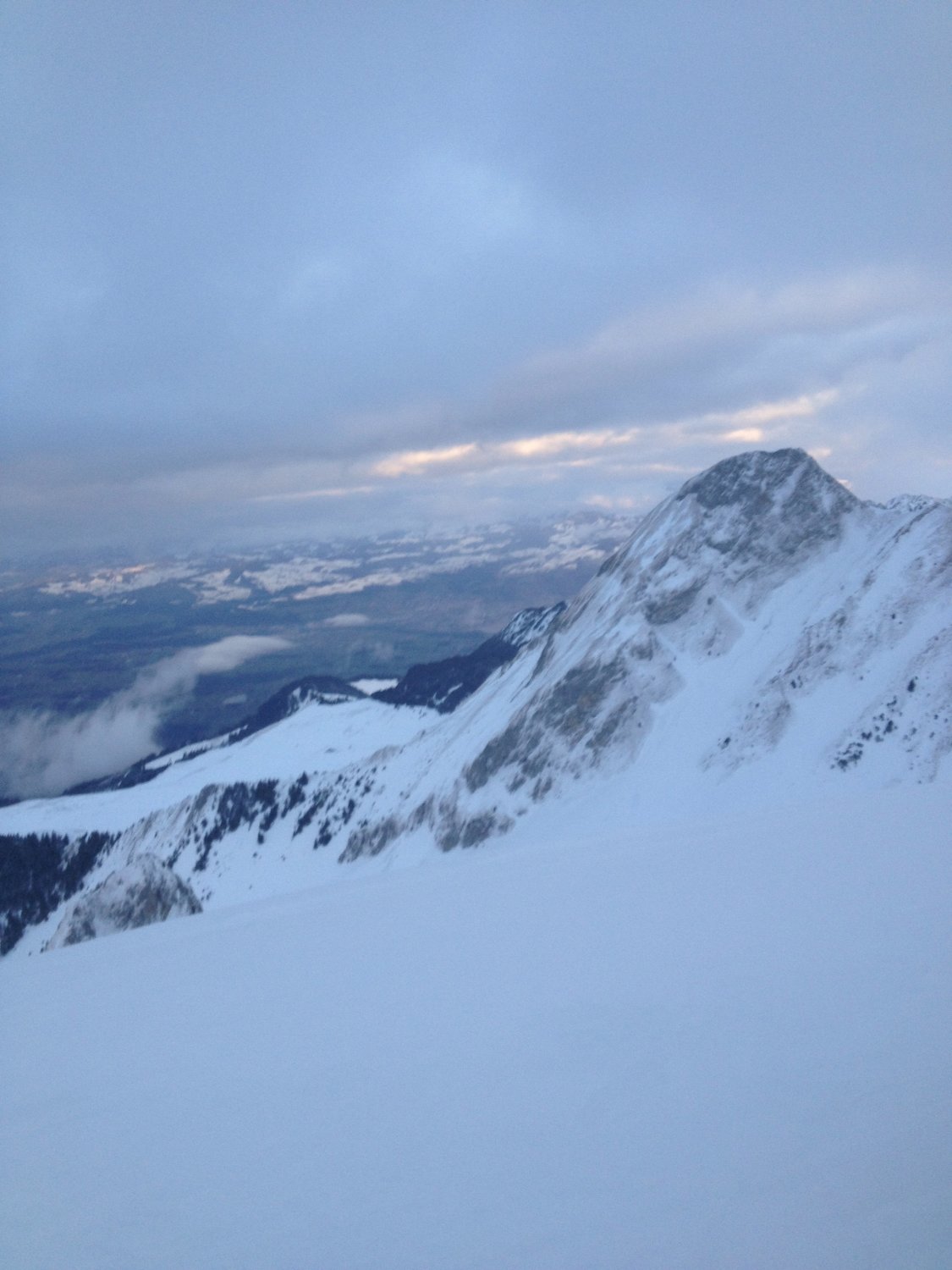 Nachmittagstour Start erst um 14.45 Uhr bei -4° und noch etwas windig. Bei der unteren Gantrischhütte ca.10 cm Pulverschnee auf harter Unterlage, beim Morgetenpass ca. 15cm Pulver ebenfalls auf harter Unterlage. Die letzten 50m zum Morgetepass haben wir zu Fuss bewältigt, Harscheisen brachten auf der rutschigen Unterlage auch nichts.