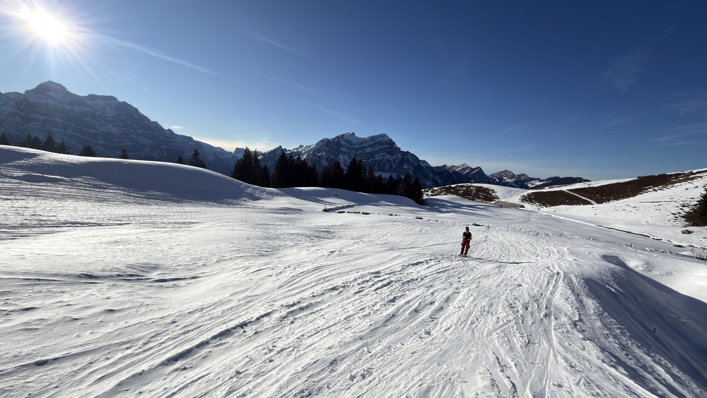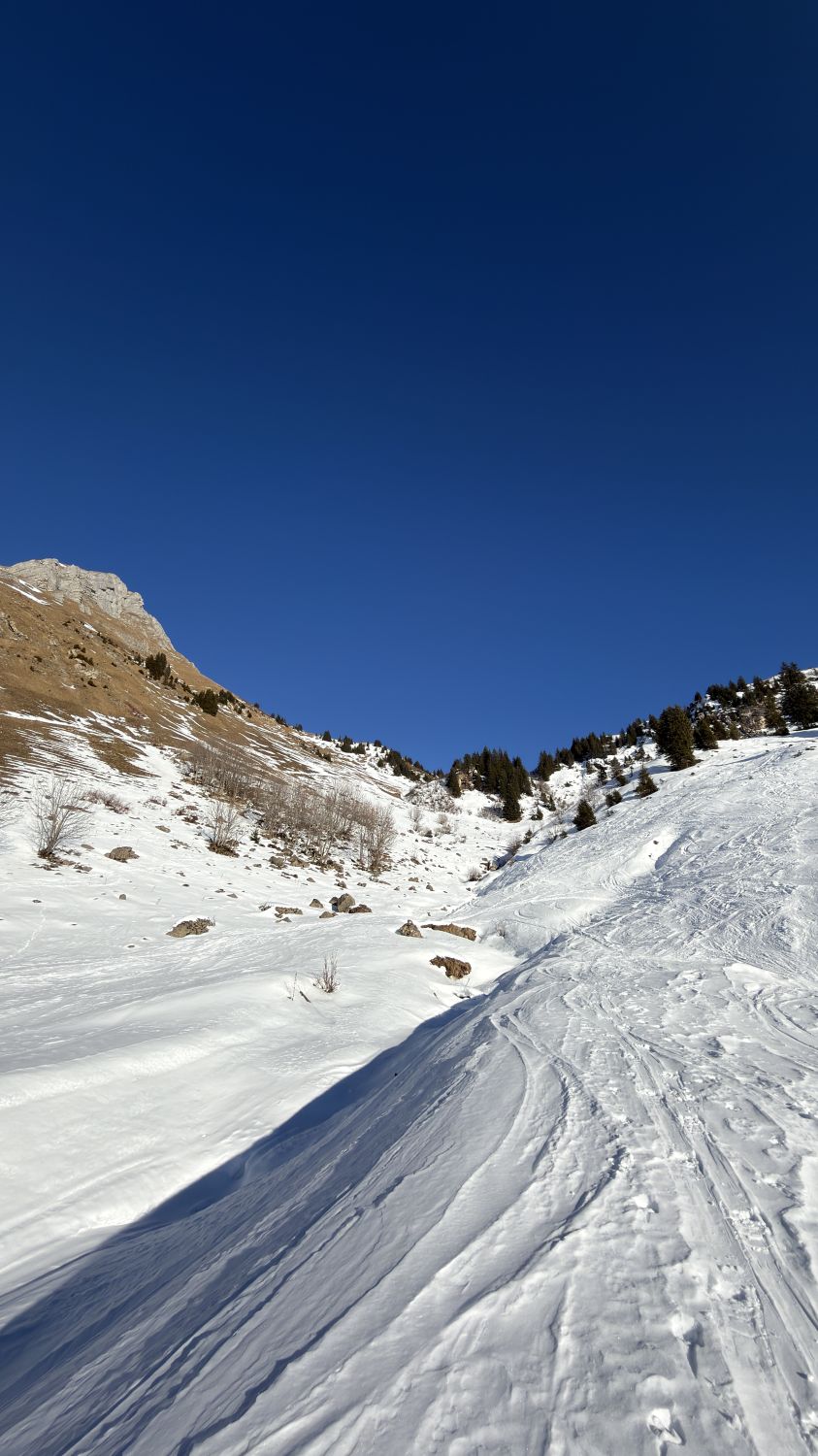 Abfahrt über Heublanggen war eine blöde Idee….viel zu wenig Schnee. Lieber Hauptroute abfahren