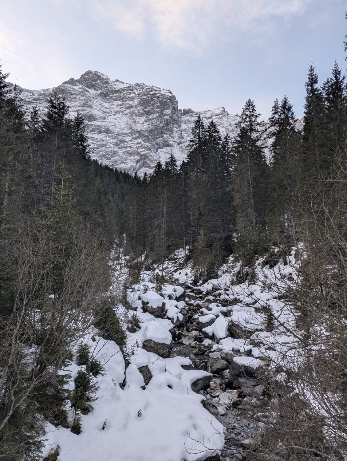 Achtung auf dem Wanderweg: Es hat viele Eisfälle an den Wänden, die brechen aber gerne auch runter.