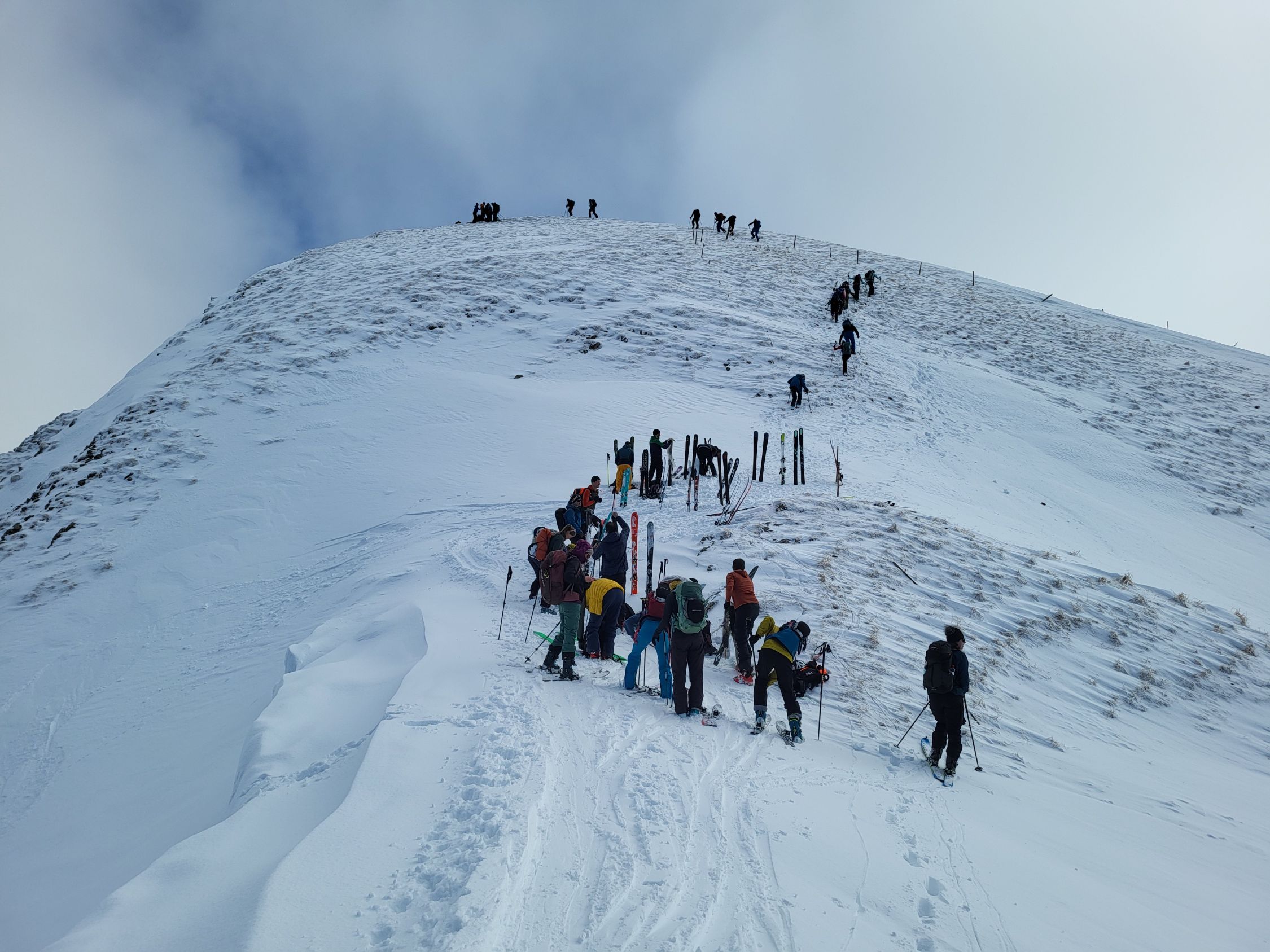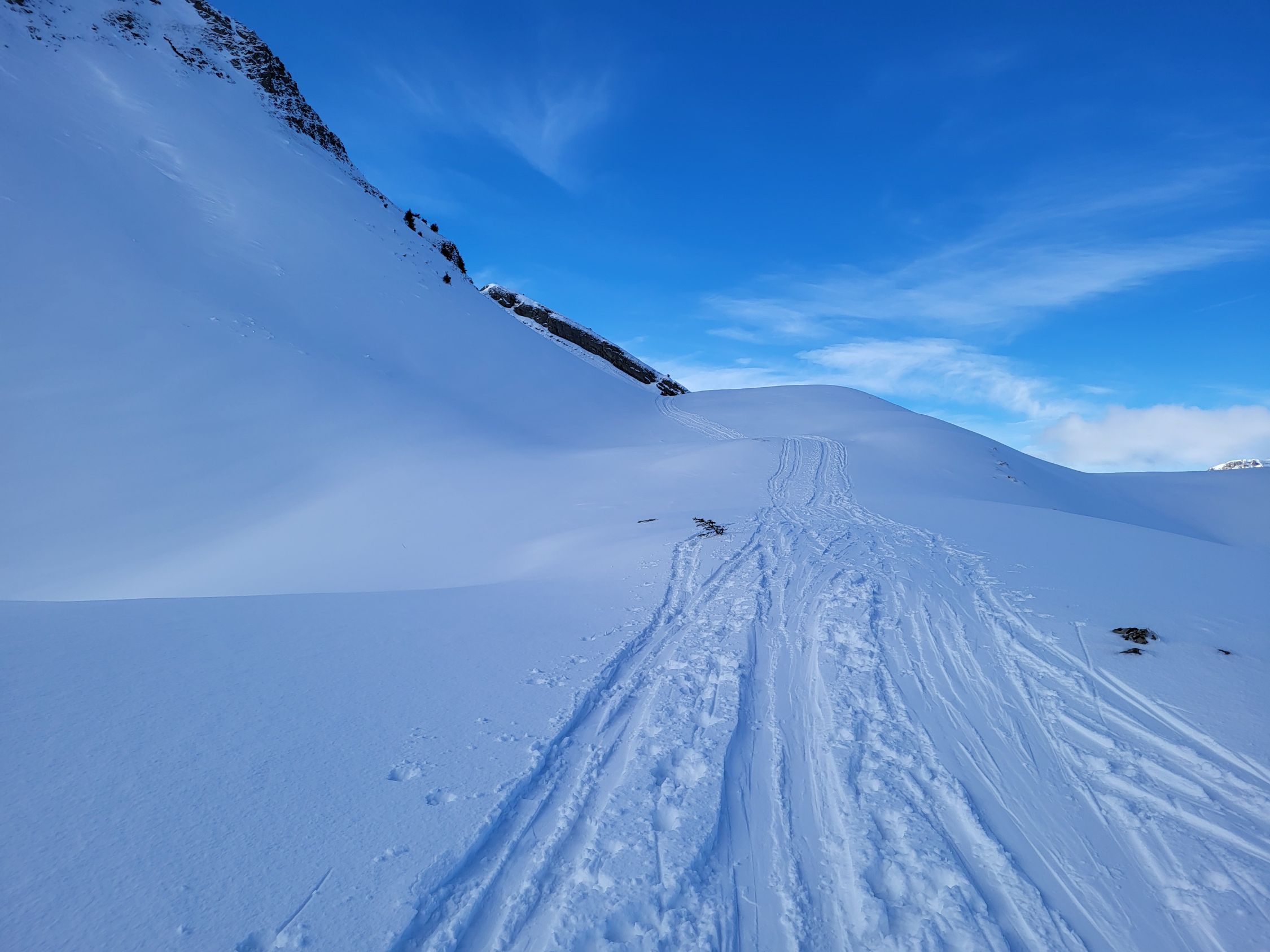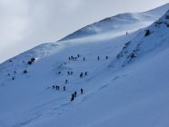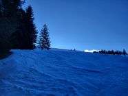 Wir sind im Kemmeribodenbad gestartet (Anreise mit ÖV) und zu Fuss auf der Strasse bis nach dem Wald (vor Pt. 1036). Danach der Strasse entlang auf den Skis. Der Aufstieg auf der Normalroute war problemos. Vor uns war eine riesige Gruppe (4 Skiclubs), aber die haben eine schöne Spur gelegt in die steilen Schlusshänge vor dem Gipfel.