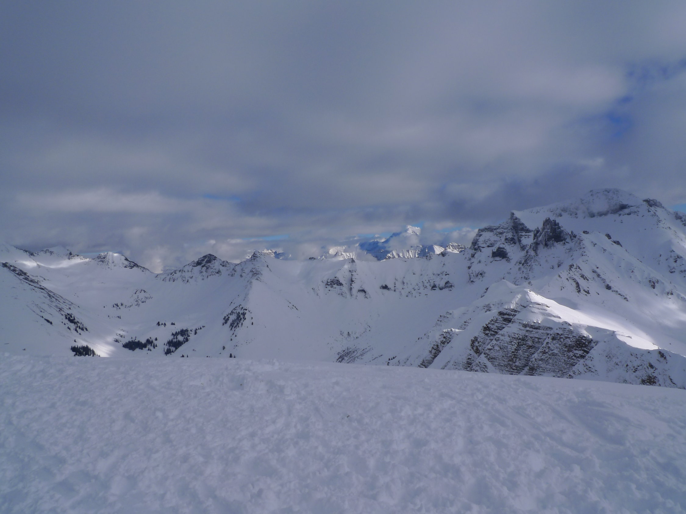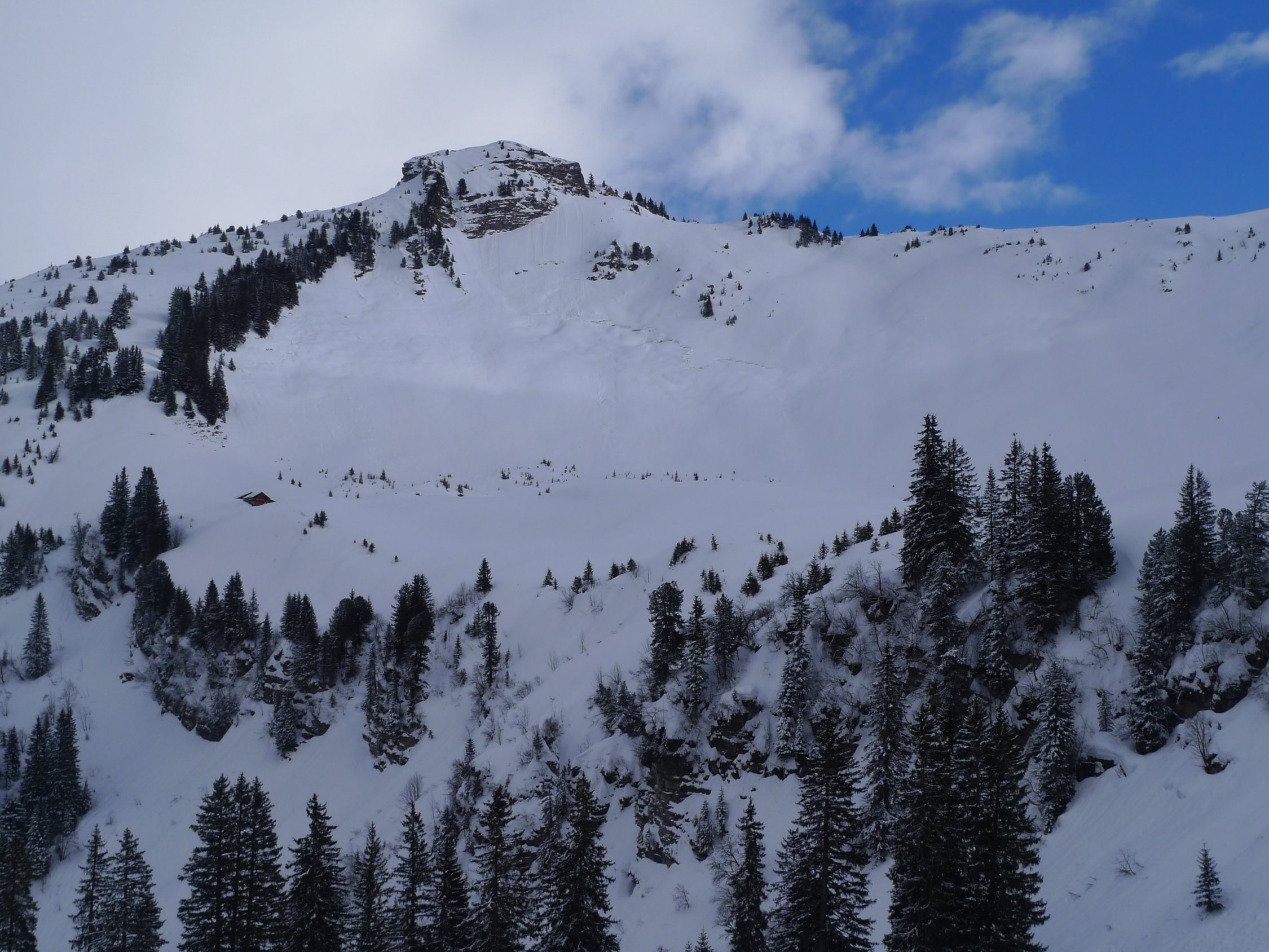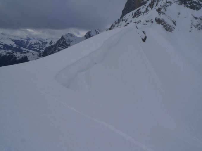 Pas d’activité avalancheuse observée, quelques dépôts dans la face nord. Par contre plusieurs grandes fissures de glissements dont une sous l'arblihorn, donc méfiance pour ceux qui souhaiteraient emprunter l'itinéraire depuis le téléski de grimmialp, la fissure est au dessus de la trace.