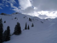 Très tracé de bas en haut donc le chemin dans la forêt est une vraie piste, plus haut, beaucoup de traces mais en visant bien encore possible de laisser quelques lignes.