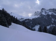 Mon idée de base était de descendre par le versant nord, qui est tracé. en haut de la face la visibilité n'était pas bonne (fin d'après midi, ciel couvert), trop dur de distinguer le relief. Je me suis ravisé par l’itinéraire classique. repeautage ensuite dans la forêt pour rejoindre les pistes de grimmialp histoire de skier autre chose que le chemin forestier jusqu'en bas!