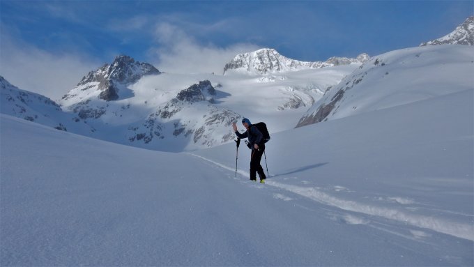 Am morgen bewölkt und - 10 Grad in Realp. 10 bis 40 cm leichter Pulverschnee bis ca. 2700 müM, dann zunehmend windpresspulver bis zum Skidepot 3320 müM zügiger nordwind ca -20 Grad und Wolkenverhangen.