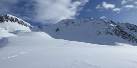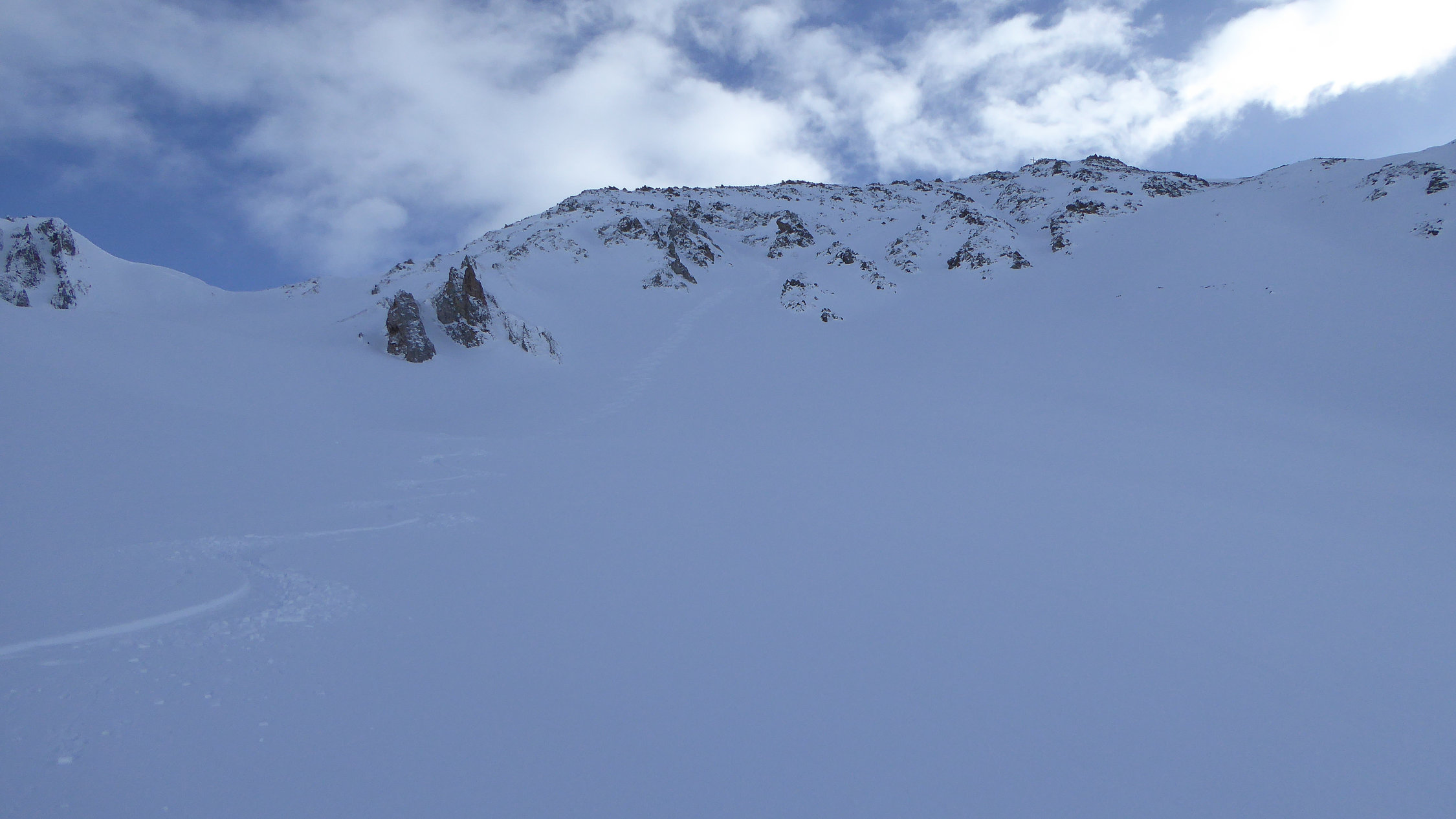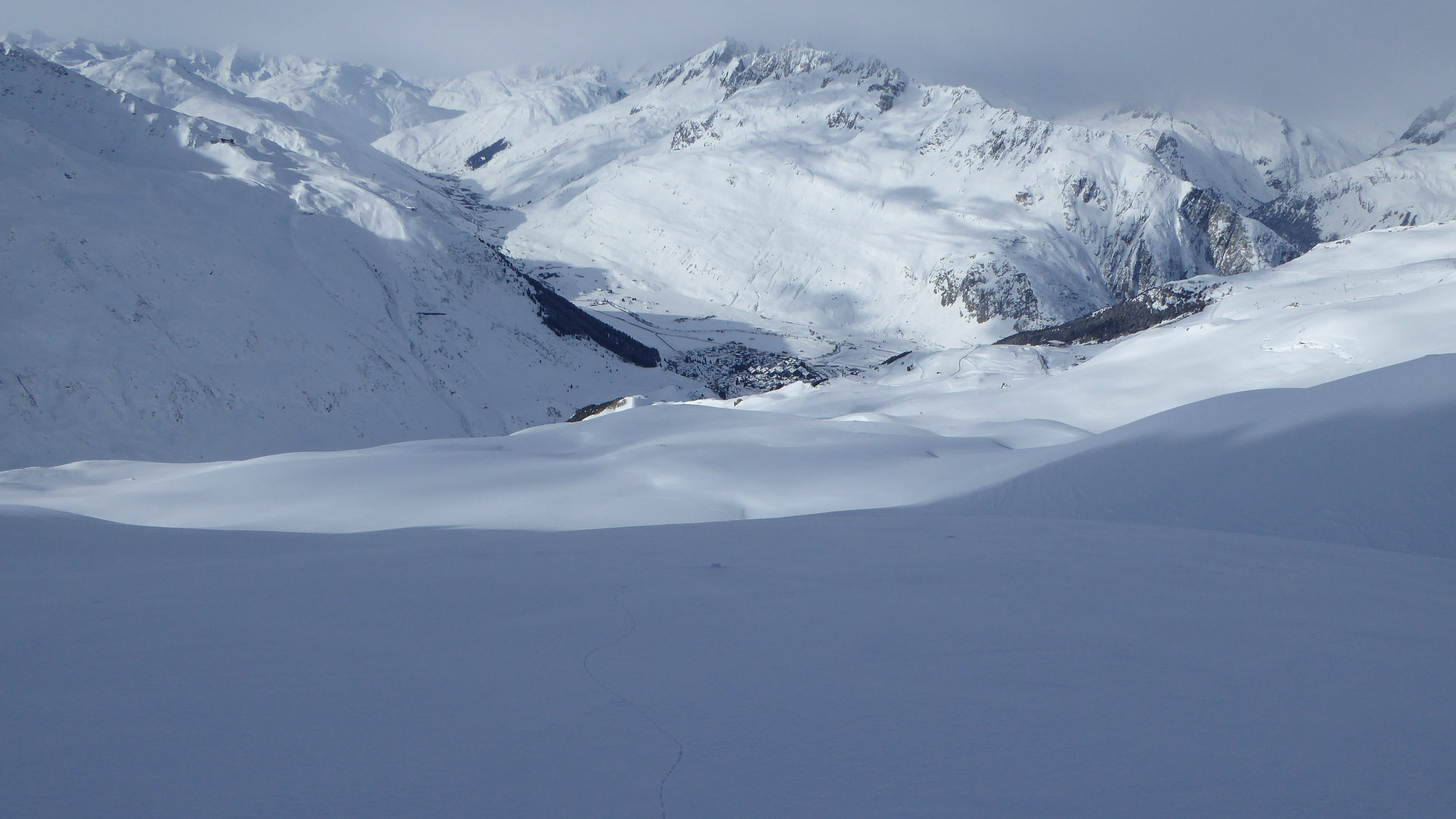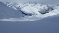 Die Abfahrt wie erwartet fantastisch - alles präsentierte sich noch jungfräulich. Das Chälen-Couloir gefüllt mit etwas schwerem Pulver (Klagen auf hohem Niveau), unten raus dann leichter Pow auf harter Unterlage. Ab Alp "Graben" dann Pulver auf Bruchharsch, wer die richtige Expo wählte fand auch im unteren Teil genussvolle Abfahrten.