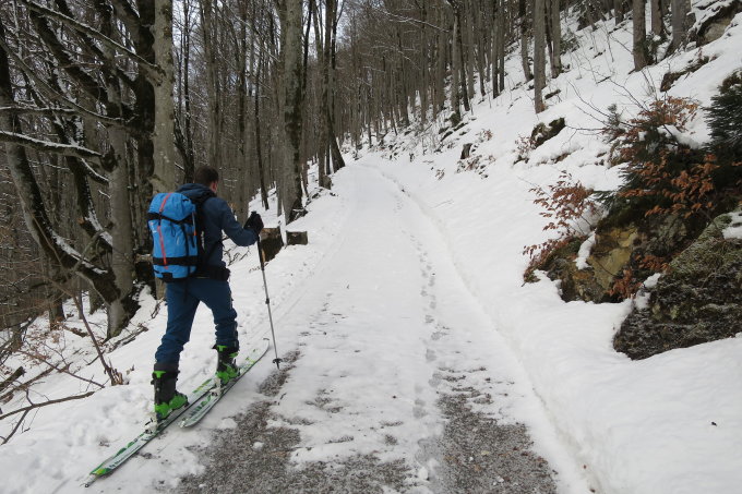 Die Abfahrt war entsprechend den Schneeverhältnissen im oberen Drittel ganz gut, weiter unten dann eher mühsam.