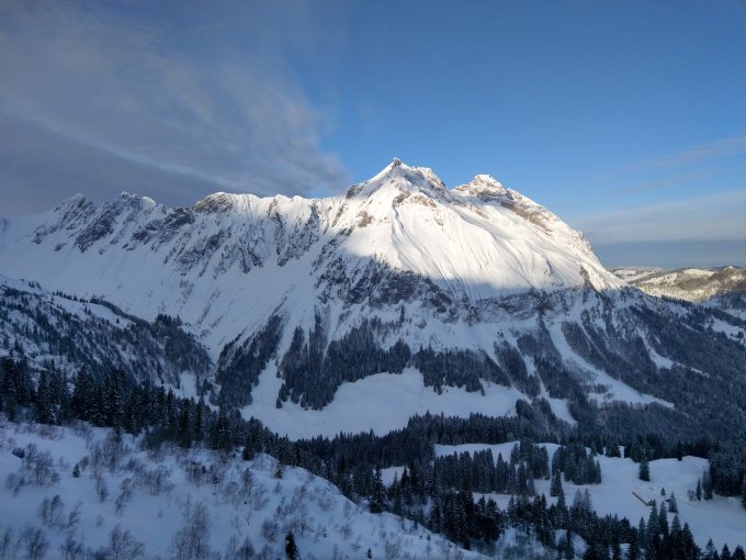 Vielleicht 15-20 cm Pulverschnee auf harter Unterlage, aber recht gut zu fahren.