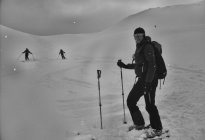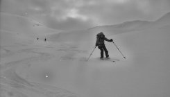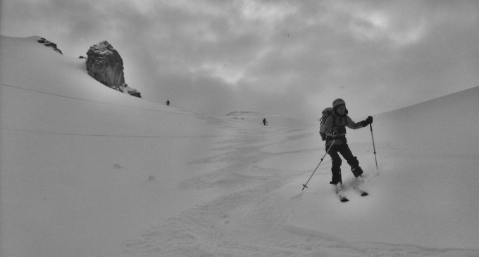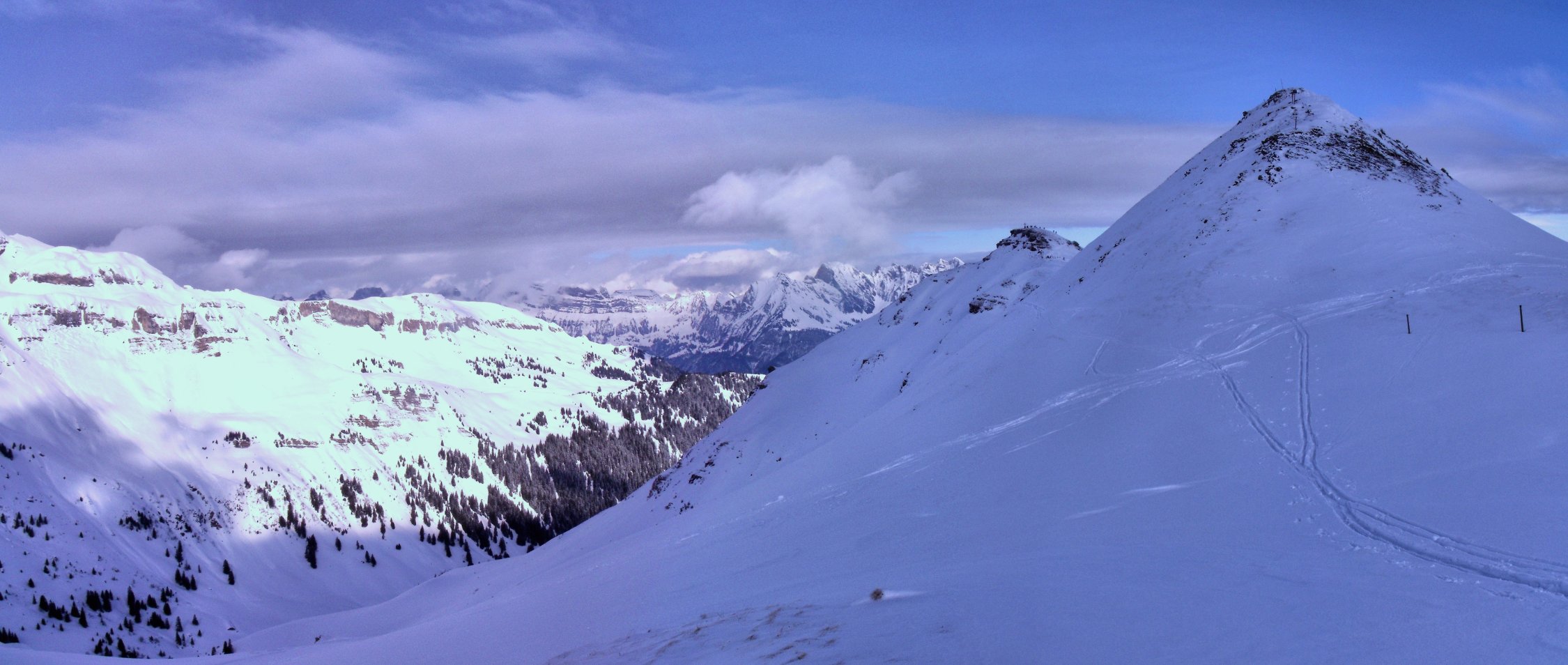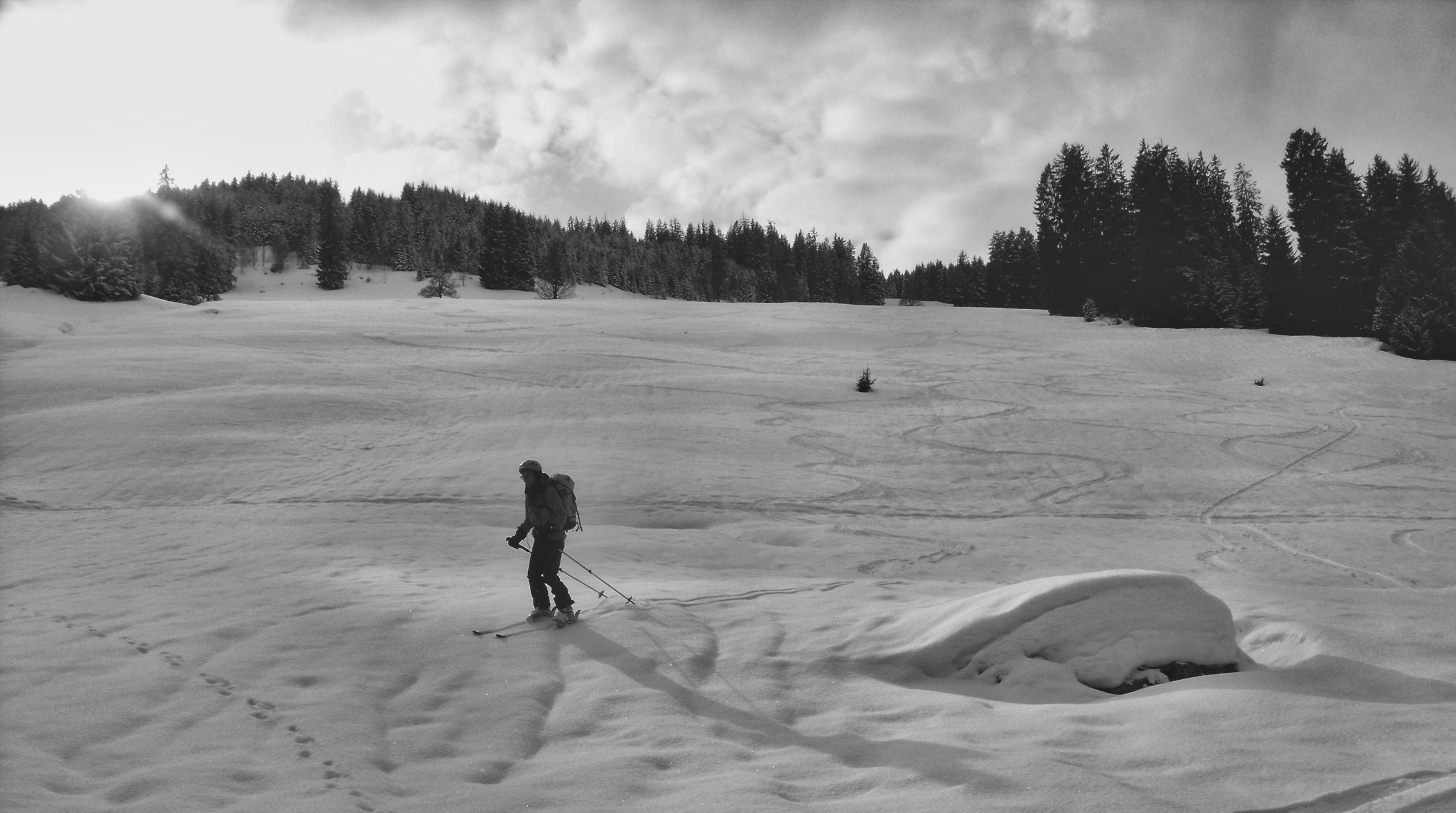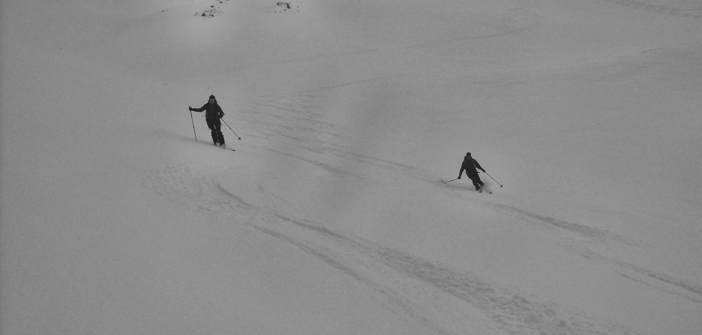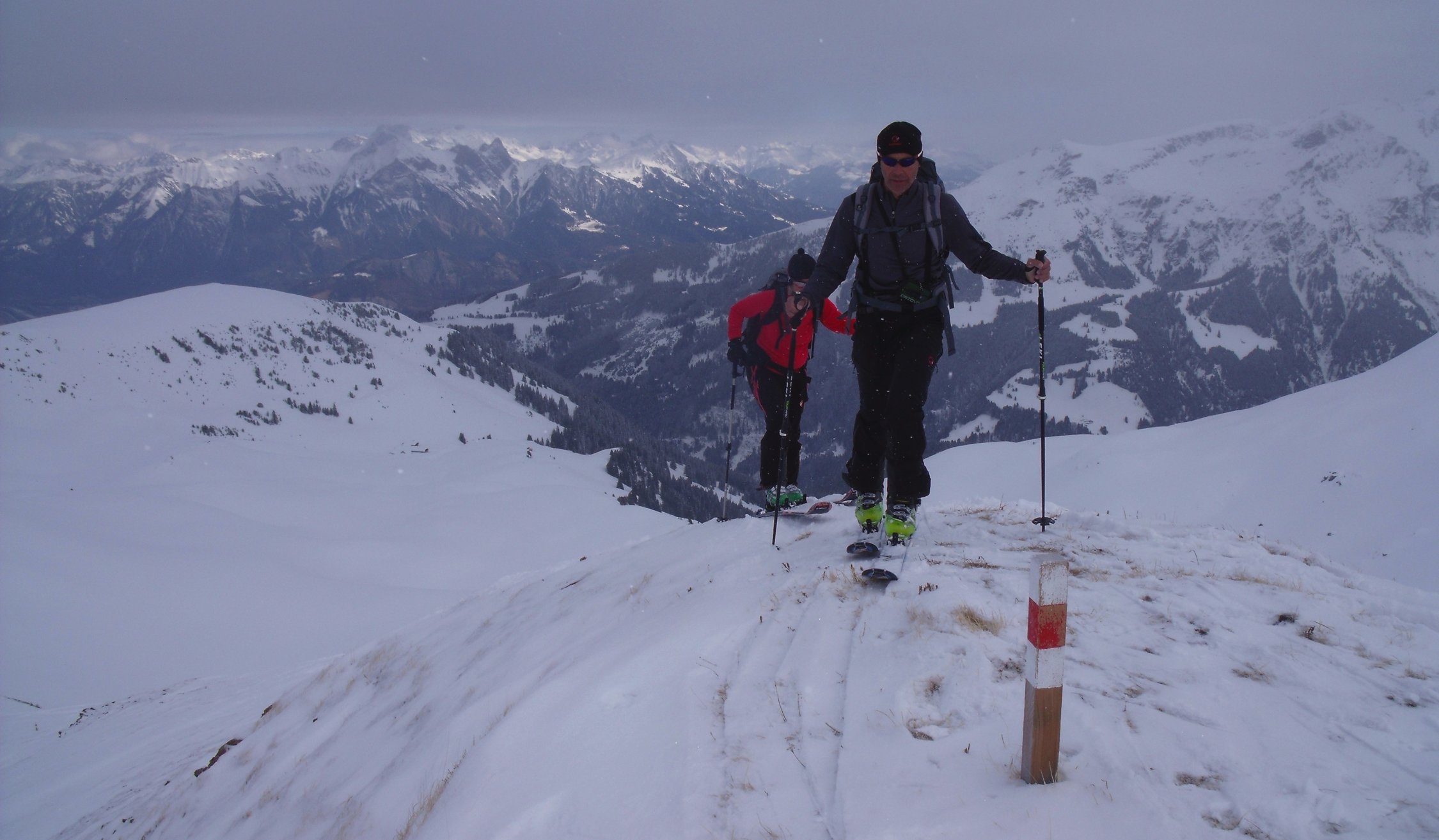 Das Wetter hat nicht wie gewünscht mitgespielt. Um uns herum war es schön, beim Langrain hat's zugemacht, war saukalt und wir sind bei diffusem Licht abgefahren. Die Verhältnisse zum Skifahren könnten vom Schnee her kaum besser sein!