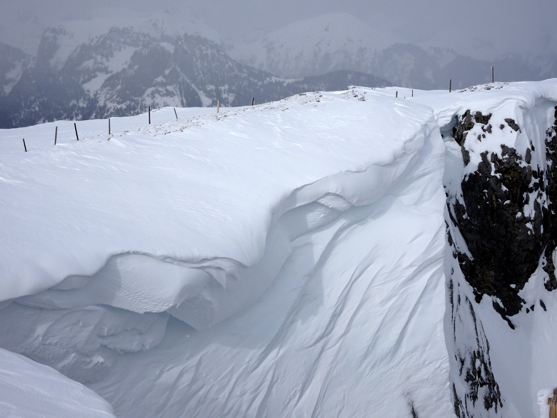 Oben Pulverschnee auf harter Unterlage, kein Steinkontakt. Von der Luegle bis zum Wiederaufstieg zum Gerstelegrat perfekte Verhältnisse und vom Gerstelegrat nach Obergestelen und bis zum Parkplatz ebenfalls sehr gute Verhältnisse. Dank dem Föhnloch war die Sicht sehr gut. Ein schöner Tag.