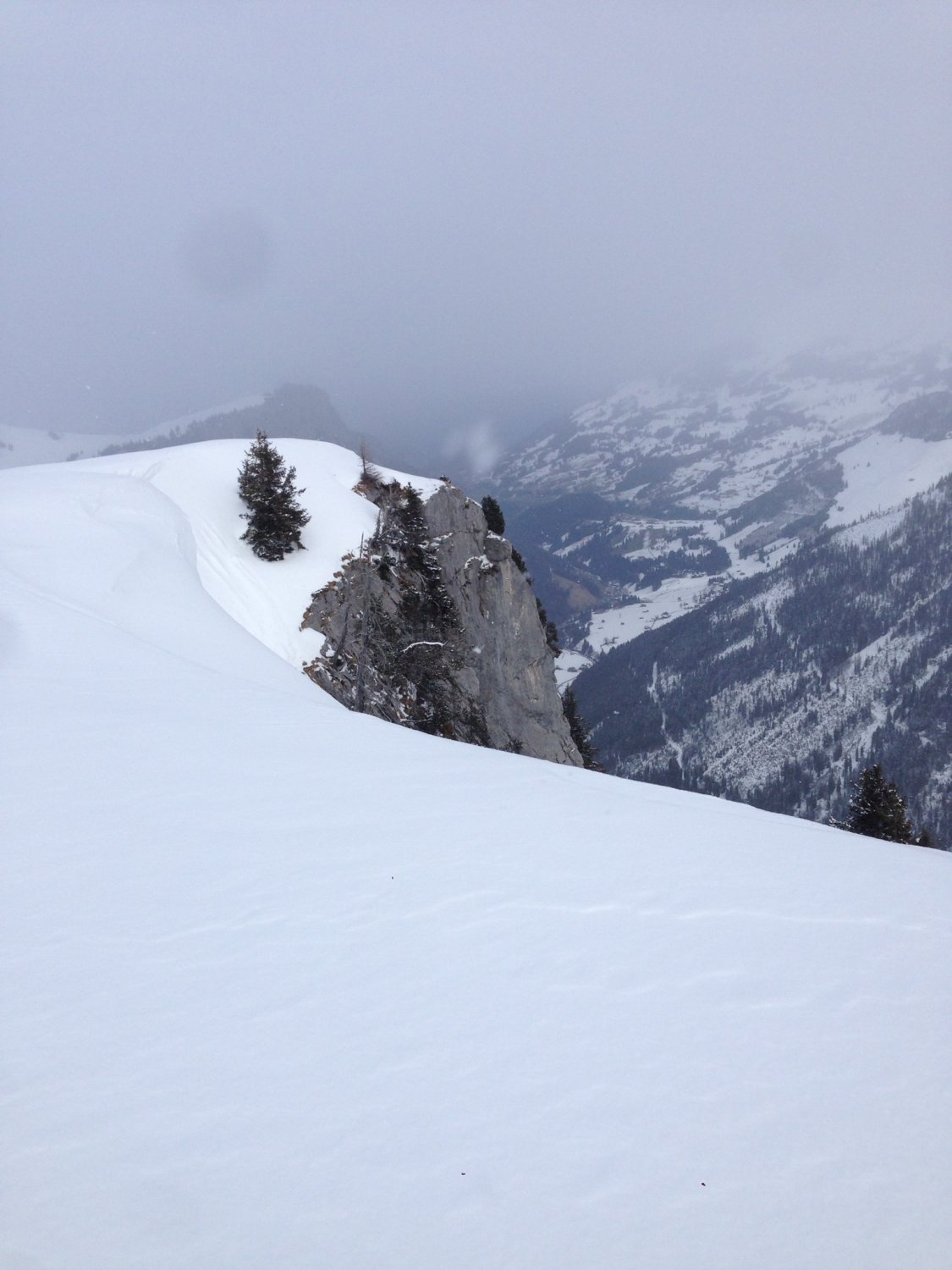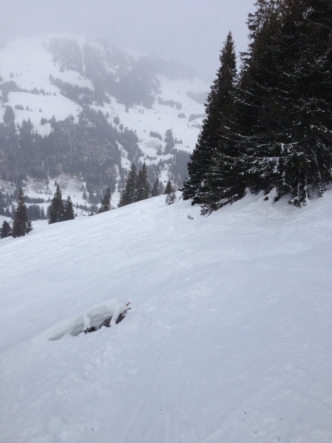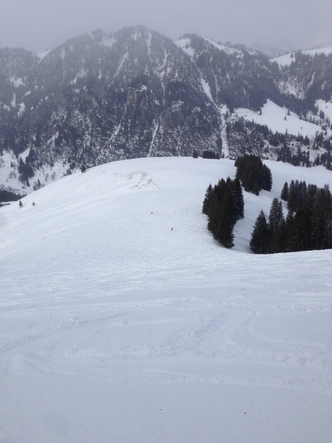 Route vom ganz unten gut eingeschneit. Gute Spur. Steilpassage Wald hart aber gut machbar. Gipfelhang top. Steilhang gut bis Alphütten. Mittelteil Brucharsch spürbar aber gut zum Skifahrern. Unten knapp Pulver auf harter Unterlage.