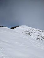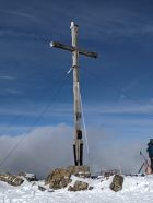 Südhänge rund um die Mittelalpe z.T. aper und für eine Abfahrt zu wenig. Am Gipfel viel Betrieb.