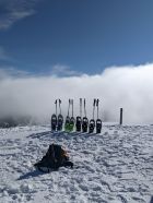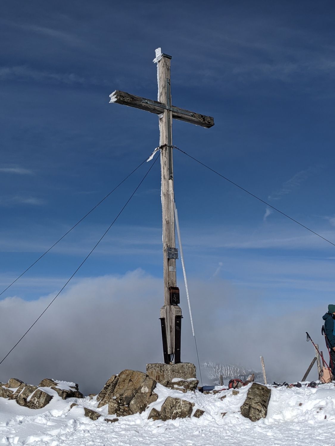 In der Nacht gab es oberhalb von ca. 1500m etwas Neuschnee. Wetter besser als erwartet, Sonne mit Wolken. Am Gipfel ca. 0C, im Tal 6C.