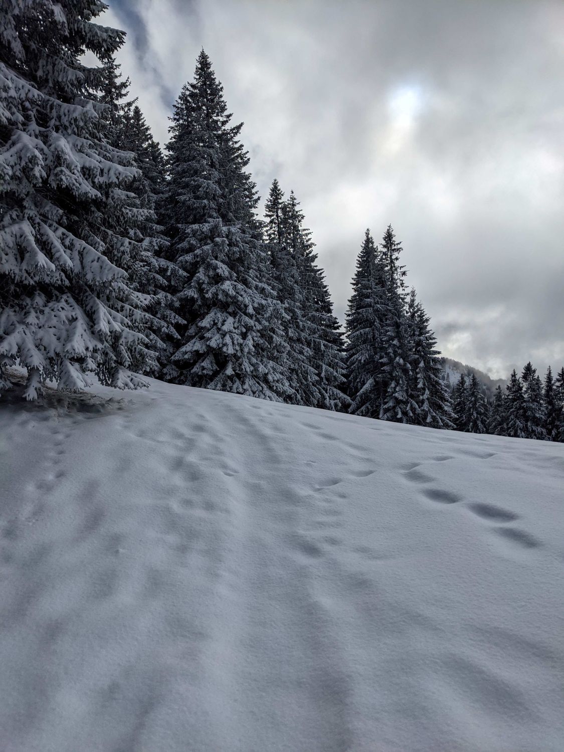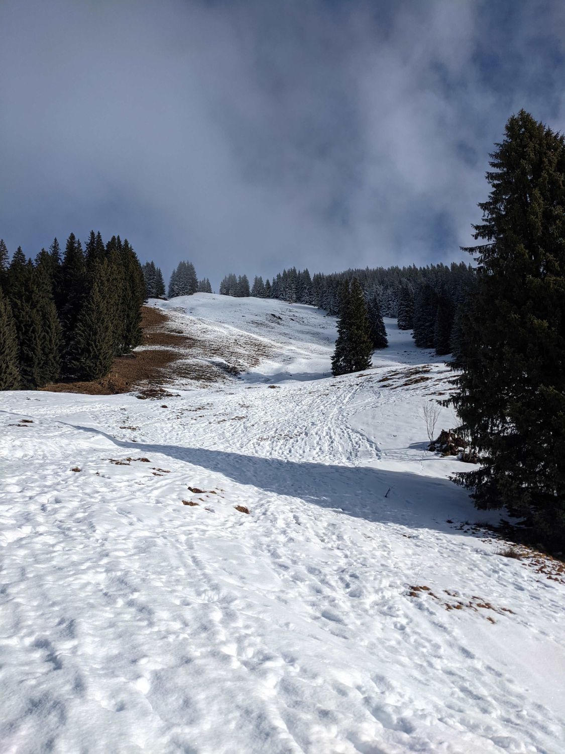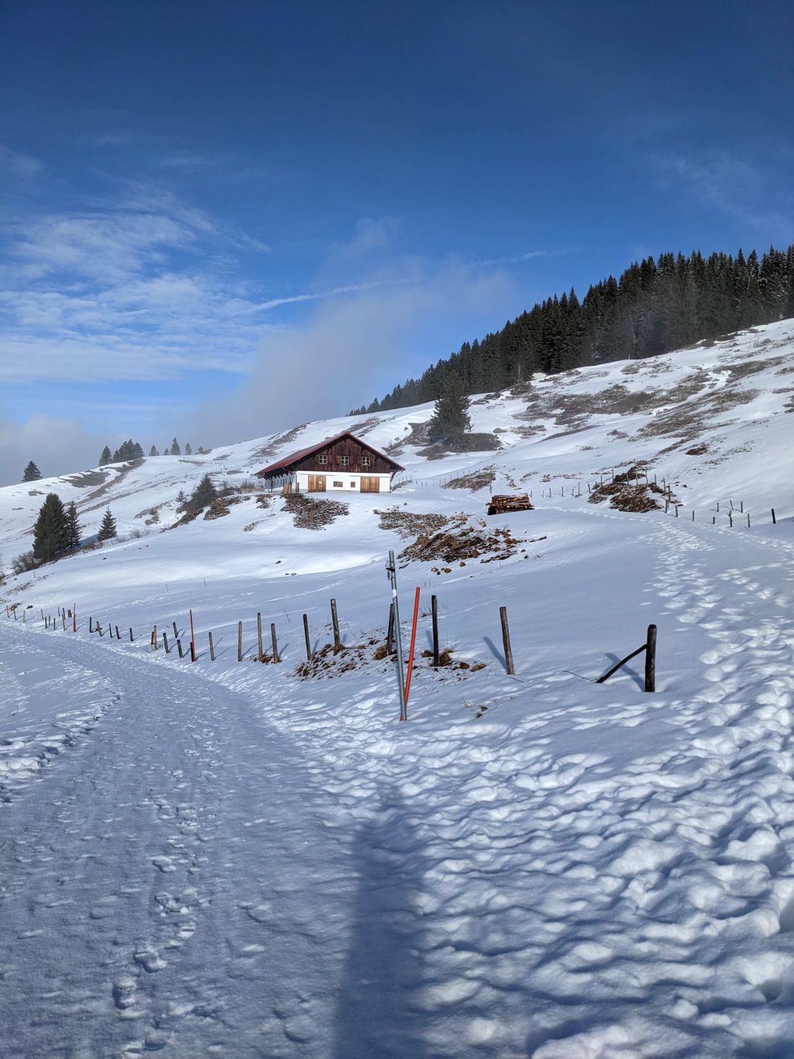 Abfahrt ins Skigebiet Grasgehren ging sehr gut. Ca.10cm Pulver auf fester Unterlage.