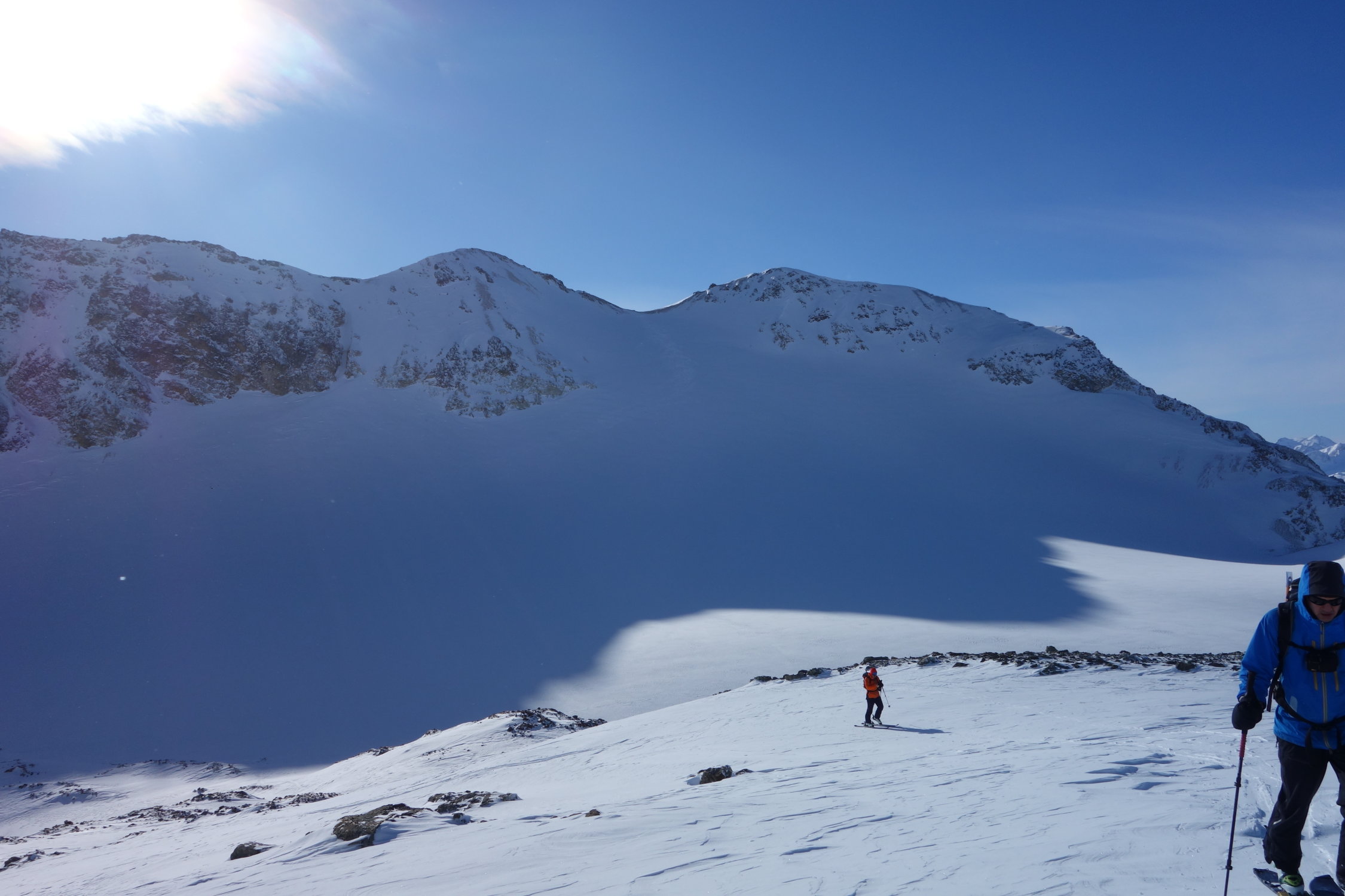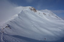 Grat sehr abgeblasen, teilweisse mussten die ski abgeschnallt werden. Unbedingt Harscheissen mitnehmen. Auf dem Vadret oben ca. 10cm schöner Pulver unterhalb ca. 20cm - etwas windverpresst aber trotzdem super zum Fahren