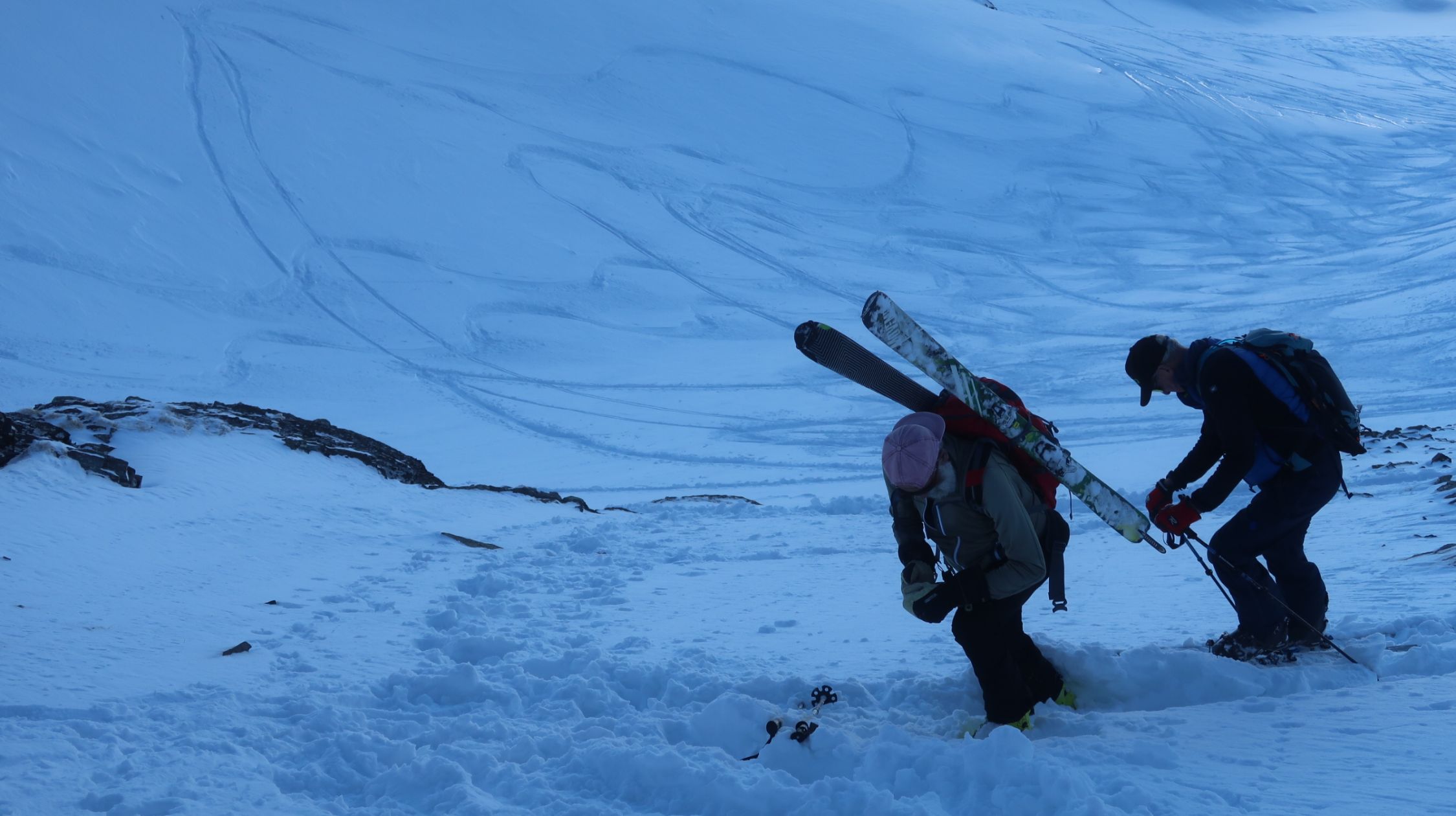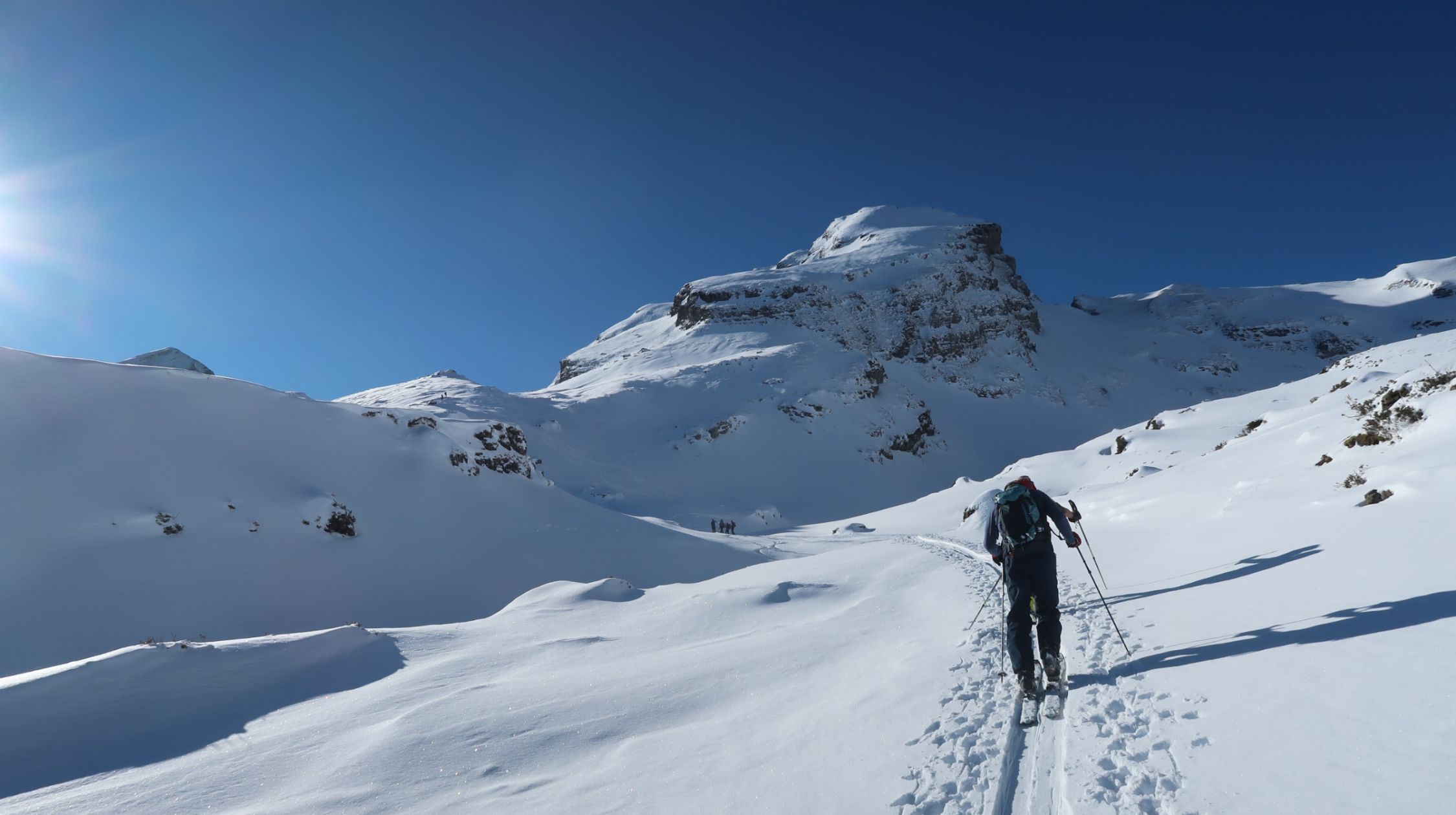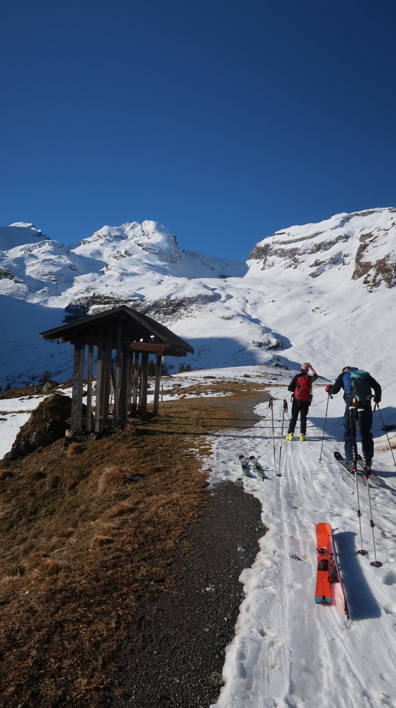 Die Strasse bis Alp Altsässuntersäss ist nur noch 2/3 schneebedeckt. Danach sind die Verhältnisse bis zum Gipfel gut. Der Grossteil mit Pulverschnee. Bei der Abfahrt wenige Steinkontakte