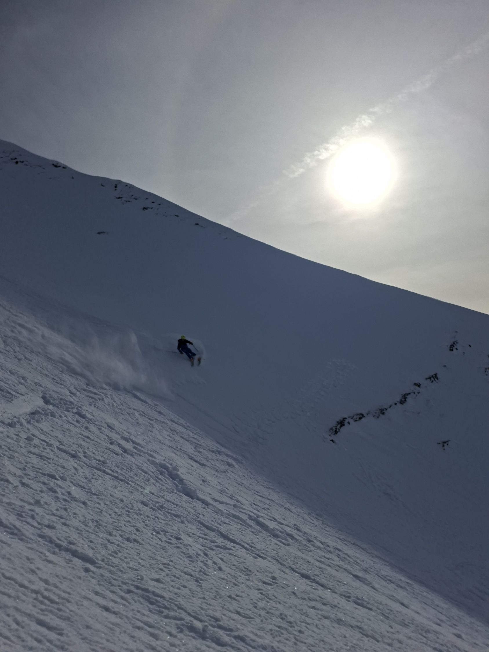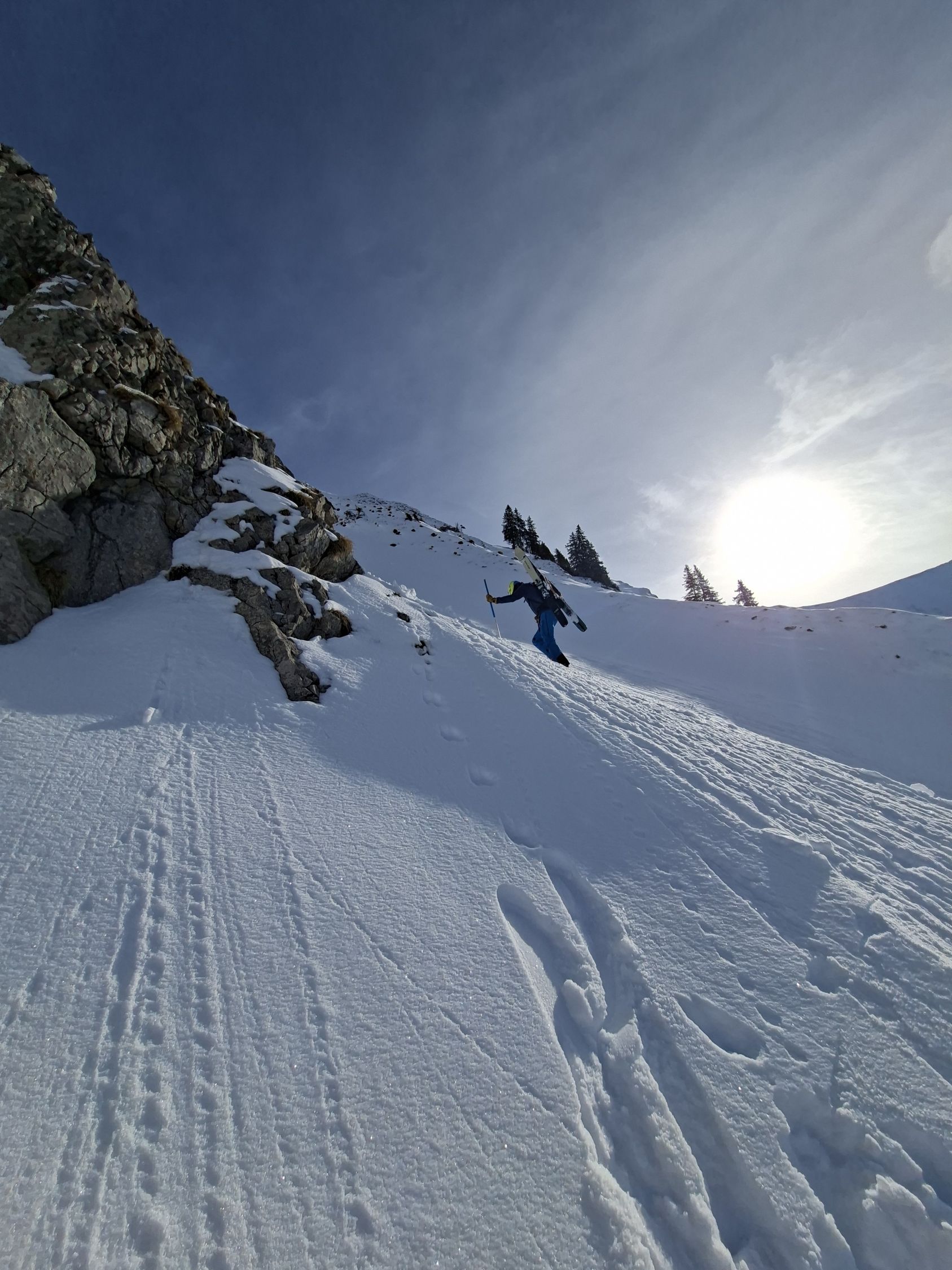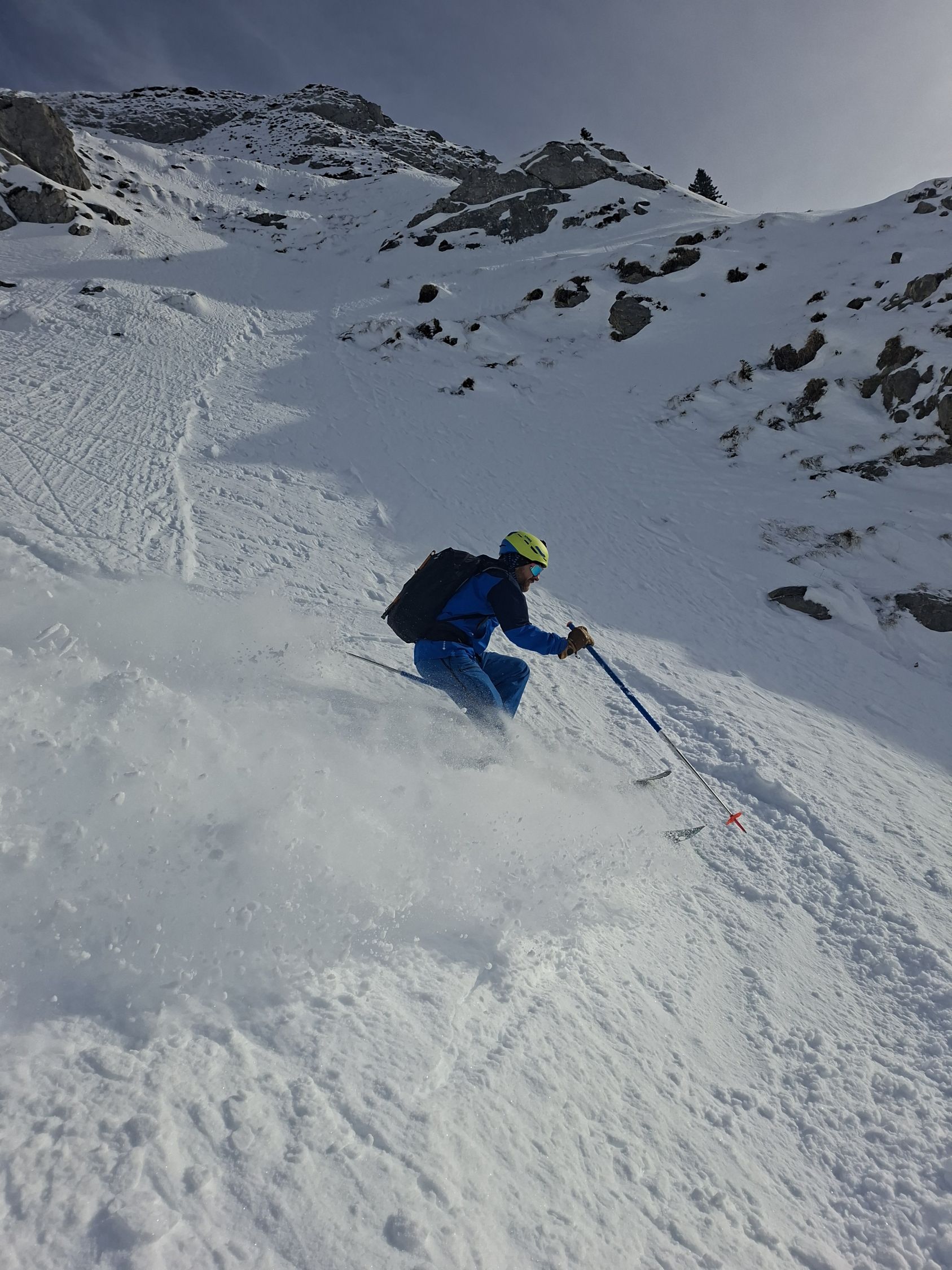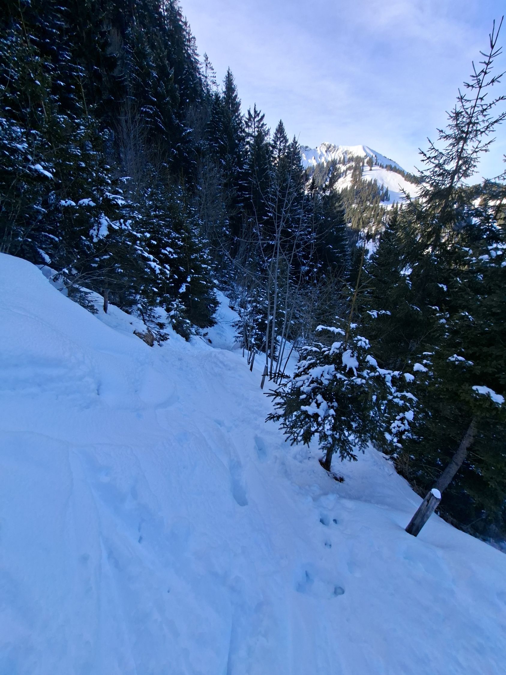 Abfahrt der hammer.an schatten top pulver bis unten.nur kurze stelle knapp mit fels.regenharst in boden von sonne weggetaut und schöner pulver bis wald.waldweg kann steil rechts umfahren werden.alpstrasse etwas für franio von almen-eisig hart und ruppig...pflicht halt...