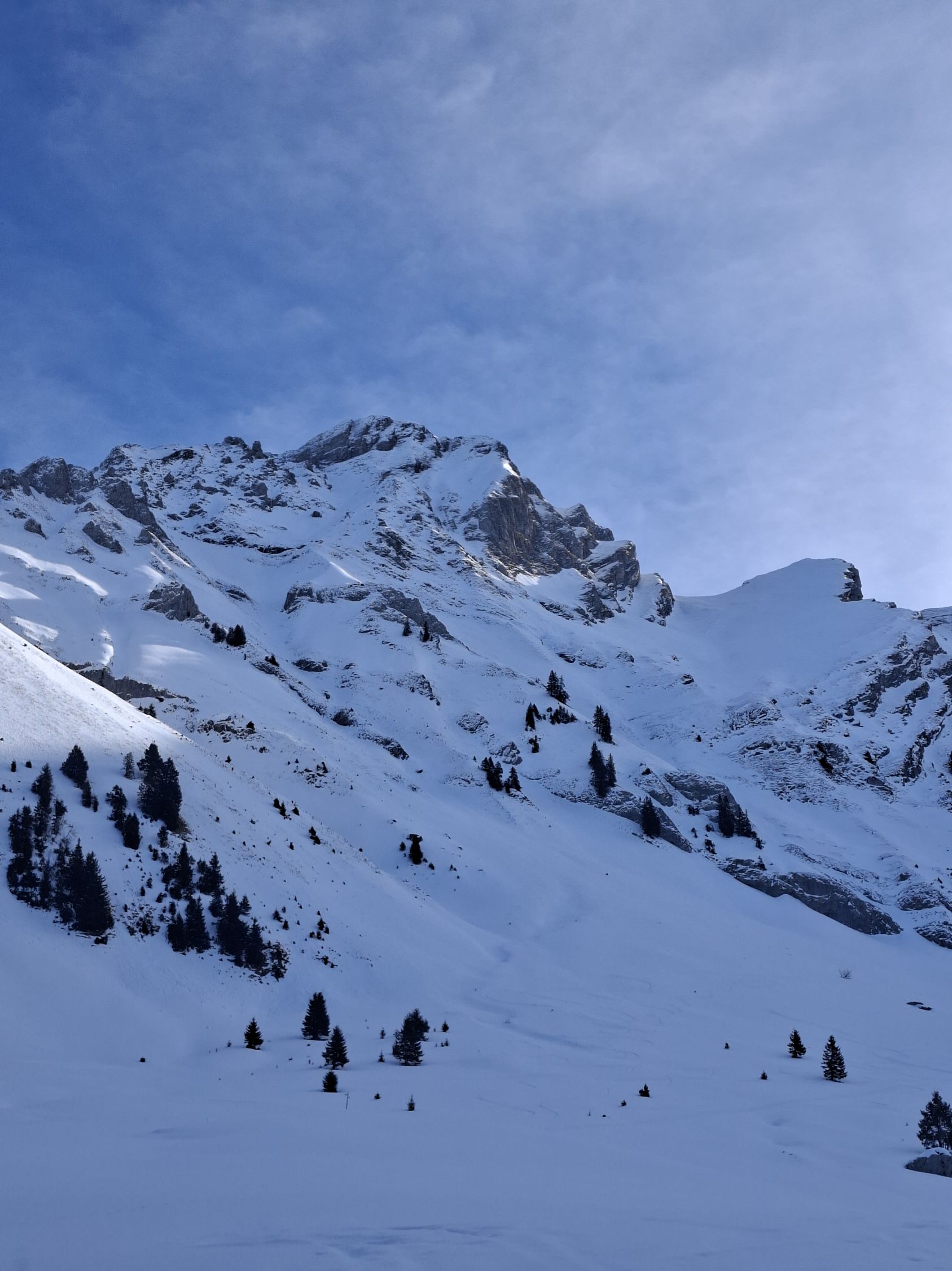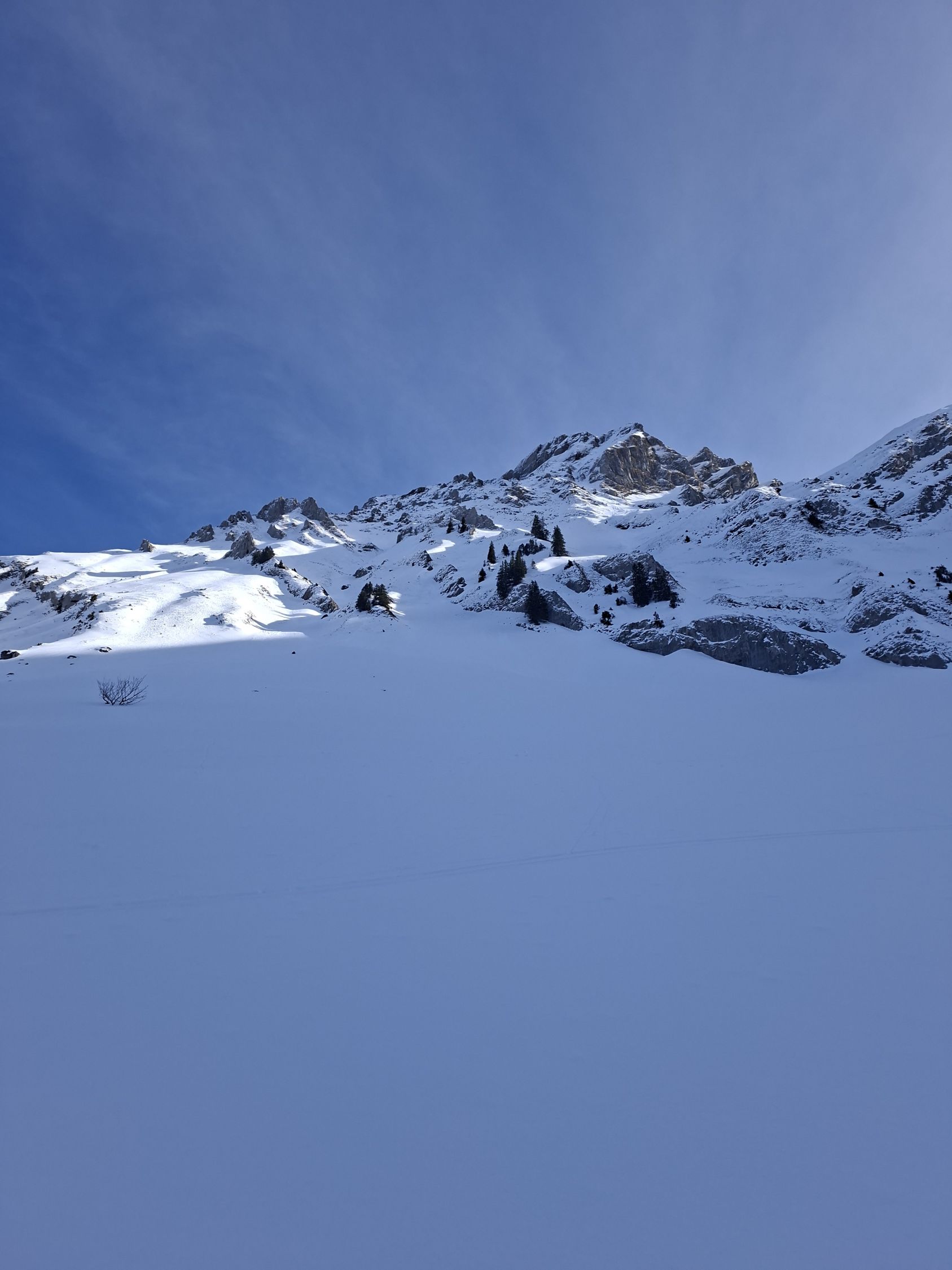 Sind mit 4x4 hochgefahren bis 1100 m. ,mit Ski möglich ab Kapelle(darunter aper)Strasse hart und eisig,oberer waldwanderweg kurz zu fuss.rest gut eingeschneit.spur bis obere alp von la paragängern gestern.w-wand bis erste felsen mit ski.dann zu fuss hoch in gutem trittschnee bis ca 2200m.für querung auf gratrücken sehr viel eingeblasener ,tiefer schnee und bei mir noch restgrippe/fieber.desshalb stopp(und ädu war da schon mal...)wäre obenraus noch gut gewesen...