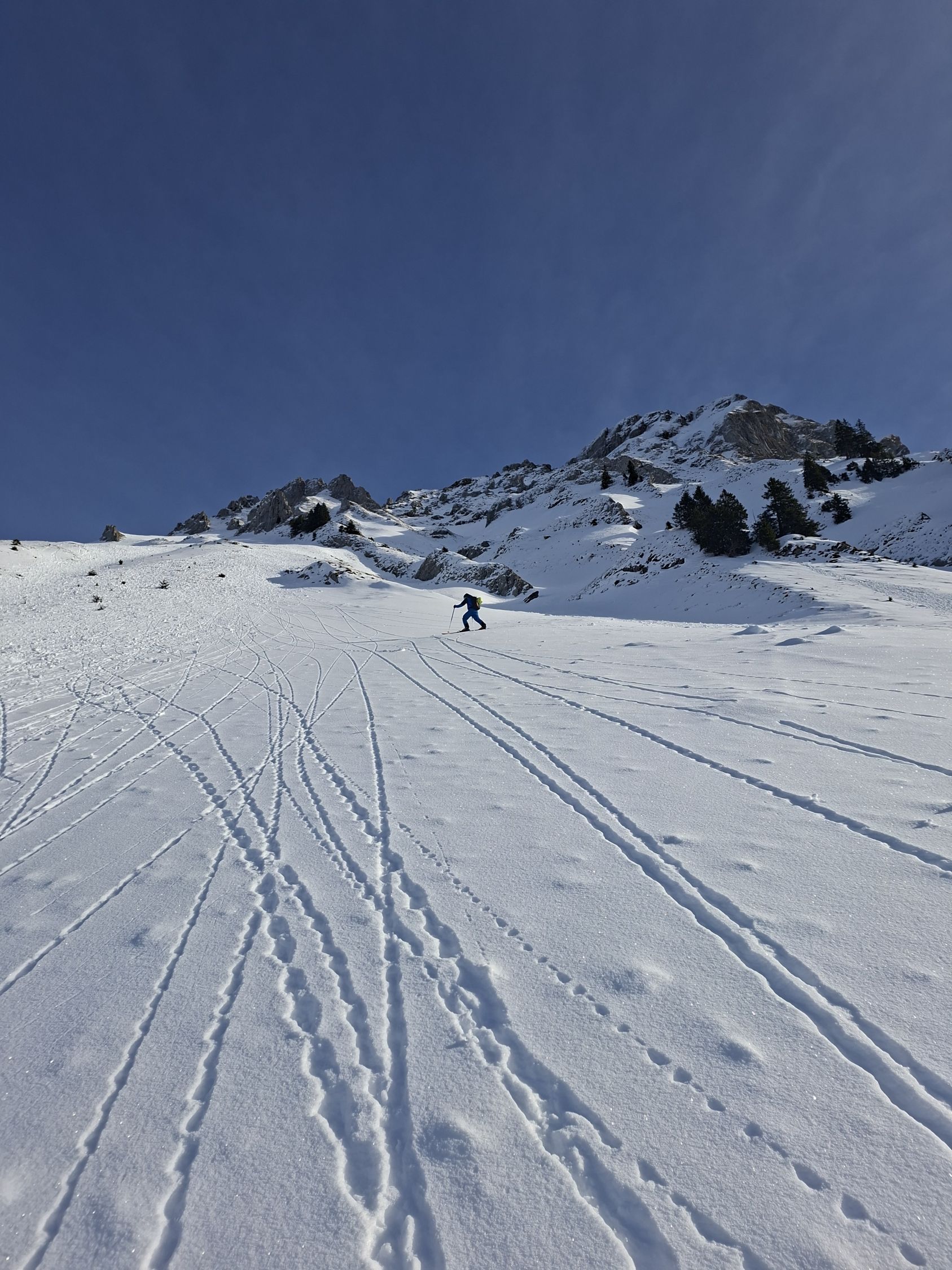 Für morgen noch lohnend.ev.rechte flankenseite hoch wegen querung mit triebschnee.la para(spuren) sah auch gut aus.culis da sind noch zu haben.alle +viele heute richtung vanil carre...