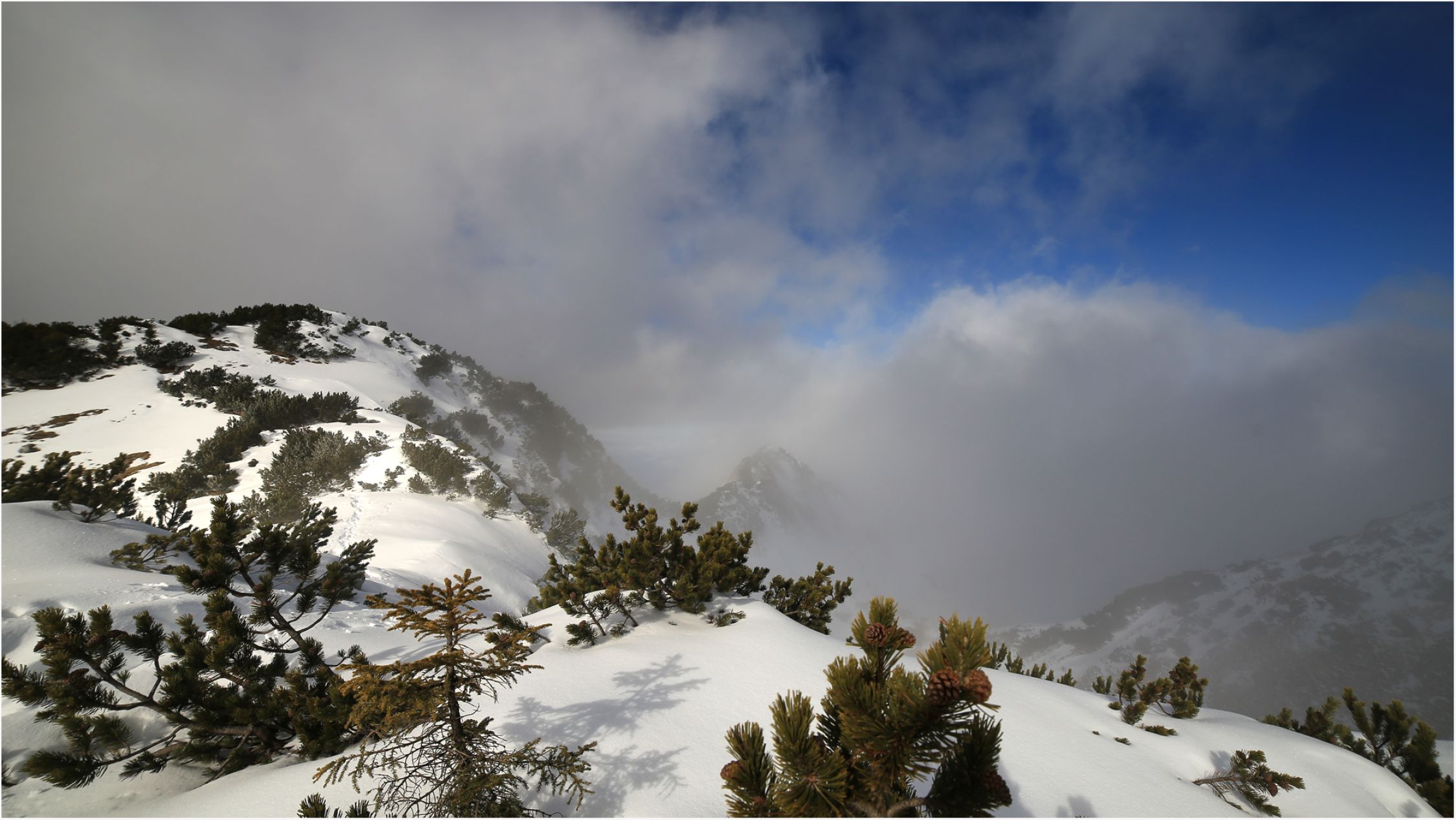 Auf dem Gipfel leider bis Mittag dichter Nebel, danach lockerte es auf.
