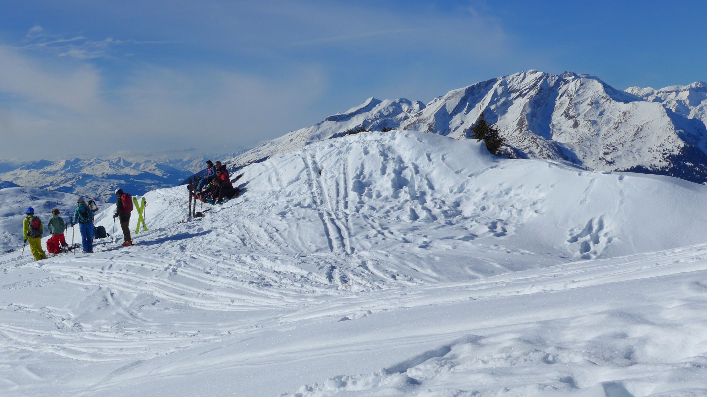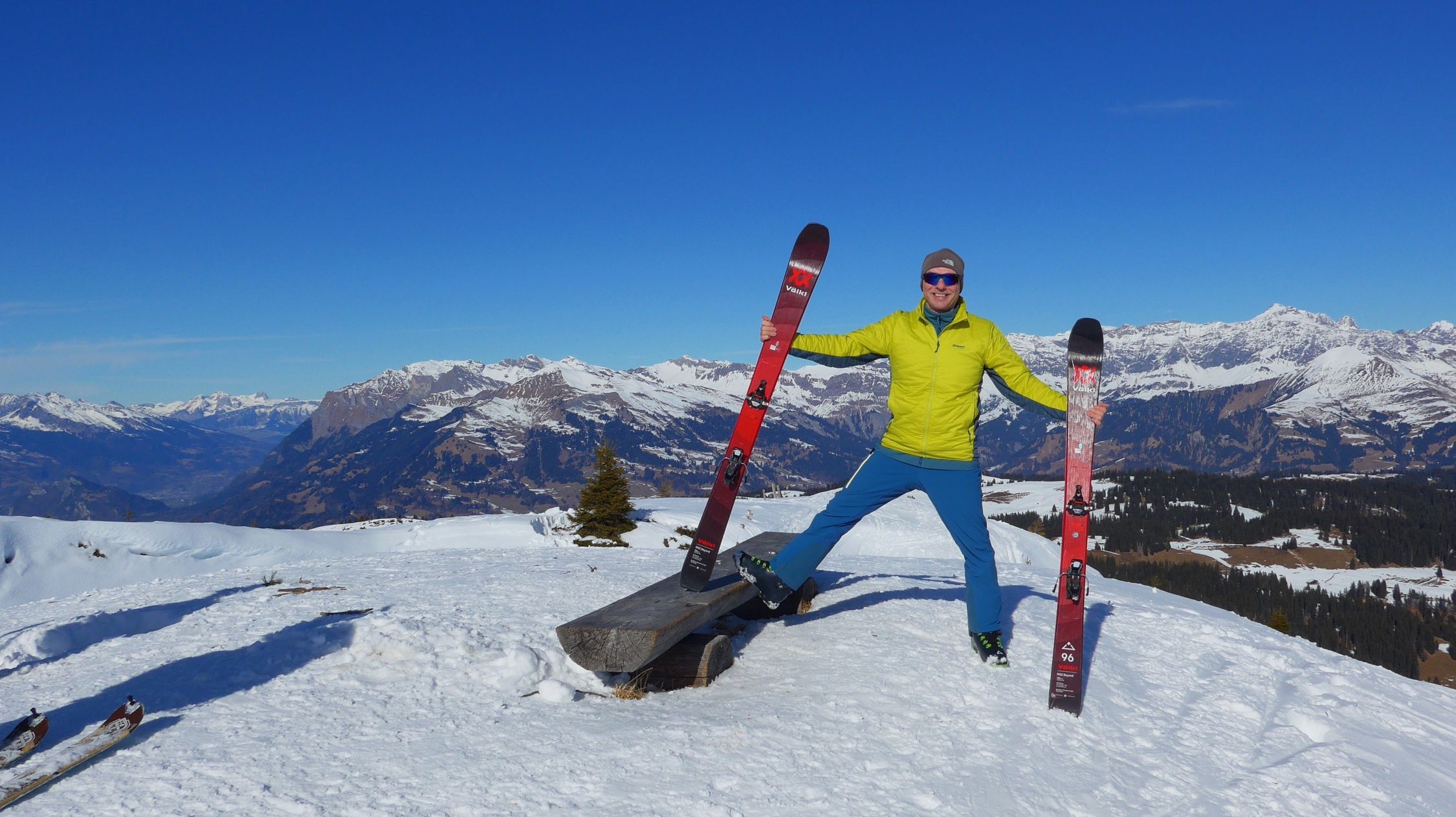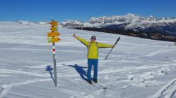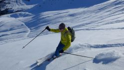 In vielen Kehren schraubt sich das Strässchen aus dem Tal der Landquart hinauf in den malerischen Ortsteil Hinterberg bei Furna. Das man dort für den Erhalt des Parkplatzes ein paar Franken einwirft, versteht sich von selbst. Zunächst geht es auf harter Piste durch den Wald, später herrlich an der Sonne in einer schönen Spur, dem Gipfel entgegen. Erfahrene mit Ambitionen können jederzeit weiter. Zum Höchstelli, Rothorn oder Hochwang. Wir geniessen lieber und freuen uns auf eine (man glaubt es kaum) Pulverschneeabfahrt !