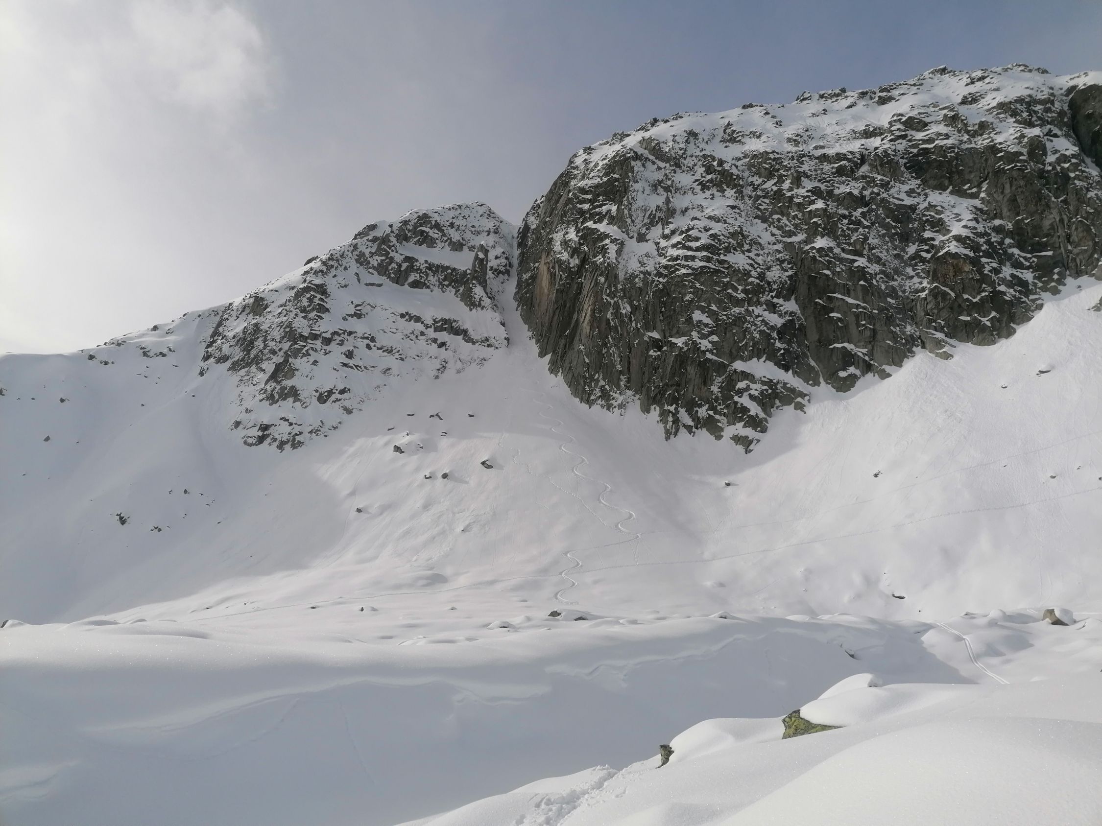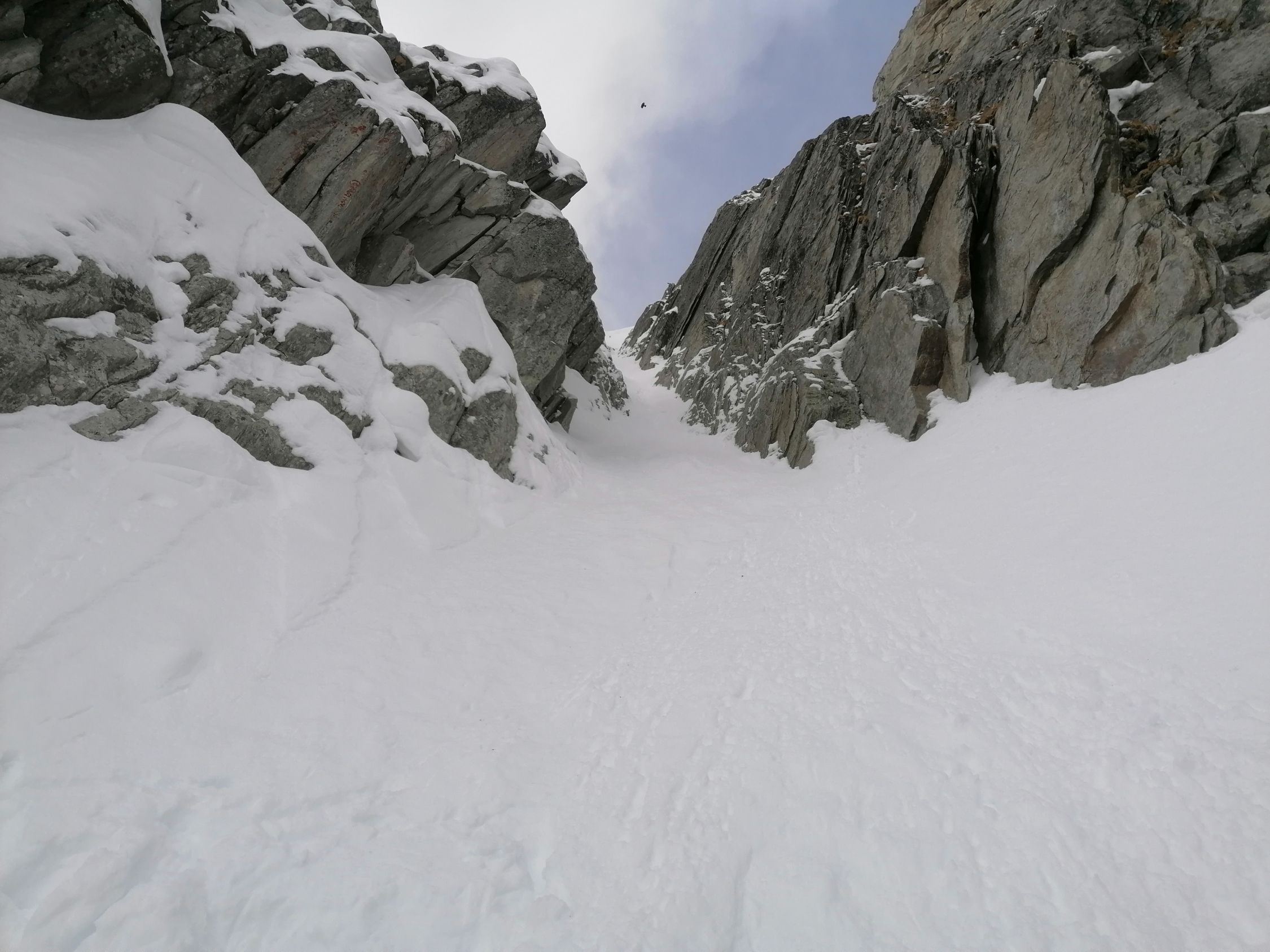 Das Couloir ist ausgezeichnet eingeschneit. Nach den Niederschlägen neu beurteilen.