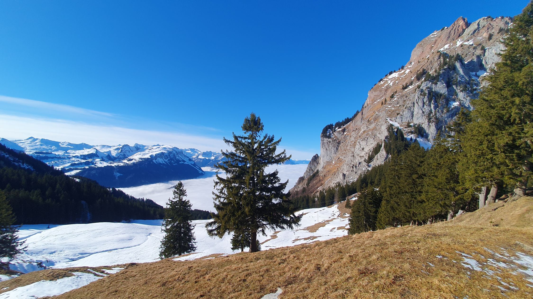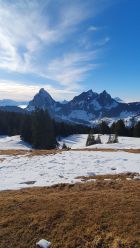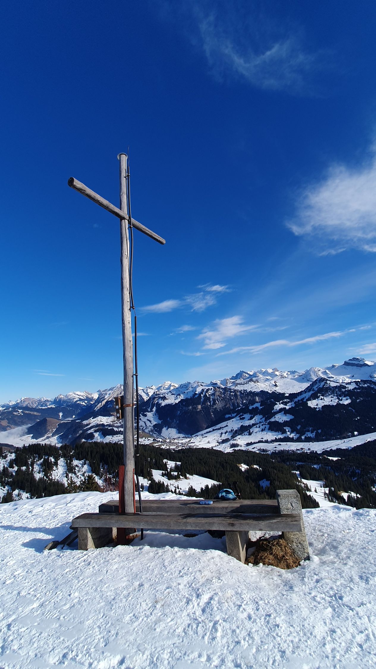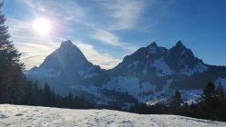 Traumtag in der Mythen-Region mit vielen Skifahrern auf den Pisten. Sonnig und windstill, auch am Gipfel. Am Morgen harter, meist tragender Schnee.