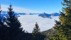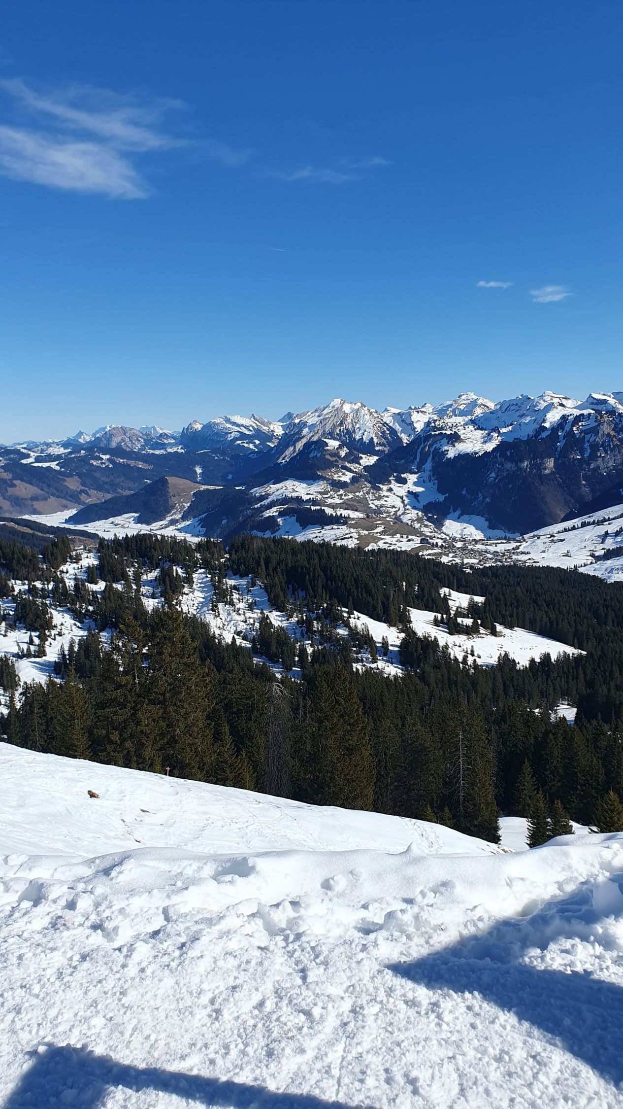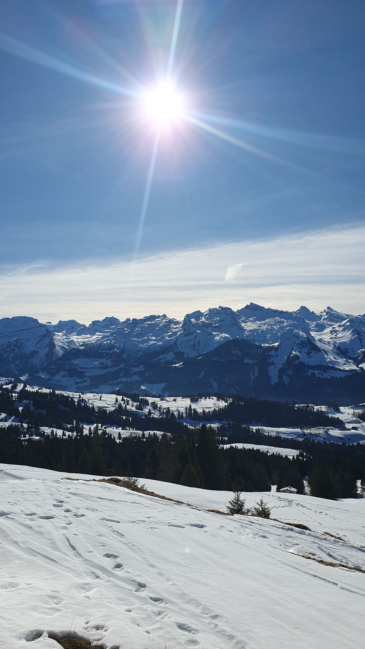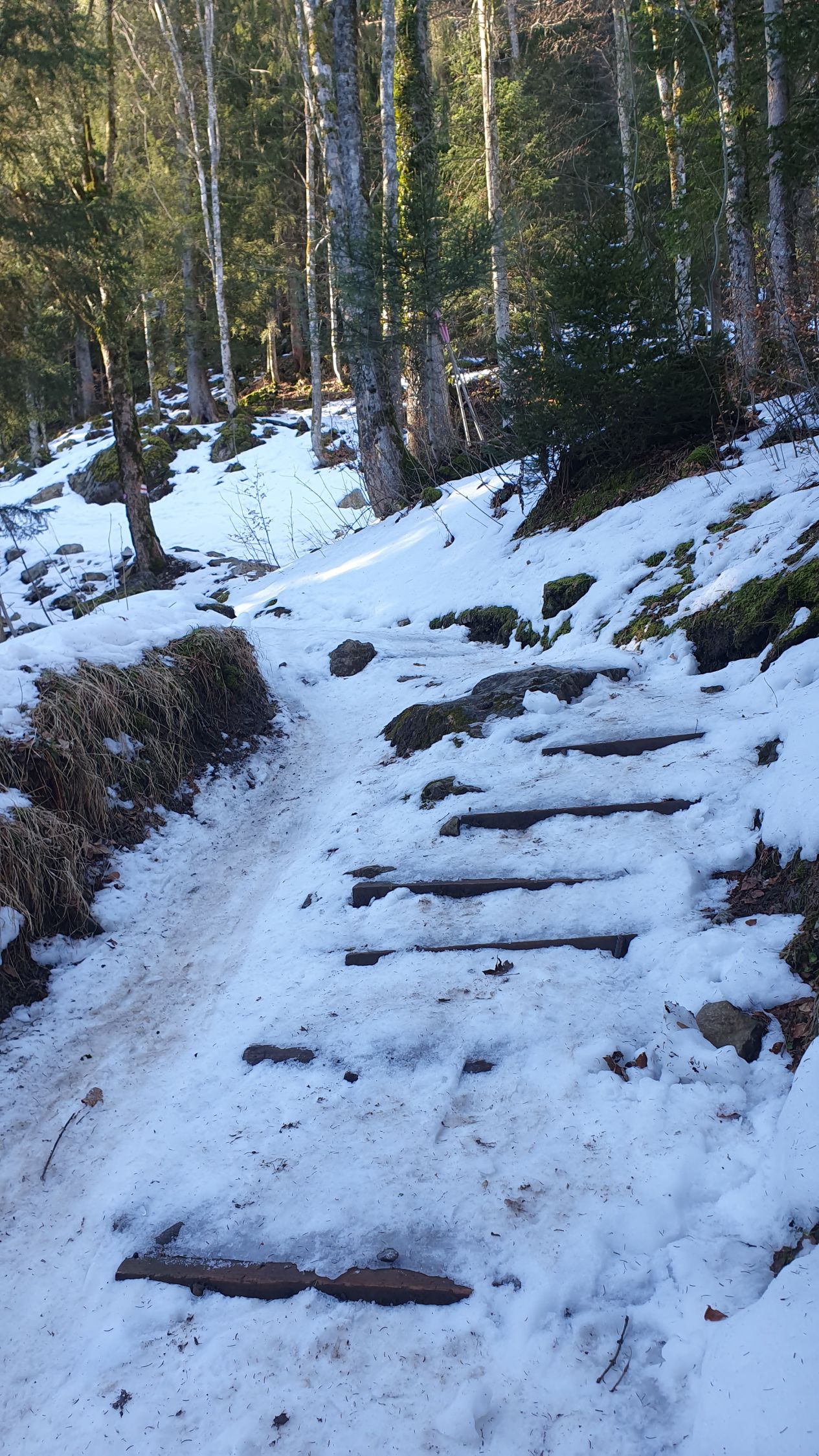 Viele Spuren, sowie gespurt auf dem Schneeschuh-Wanderweg und Schneeschuhe nicht unbedingt nötig. Aber Spikes / Iseli von Vorteil. Da es an schattigen Orten im Wald häufig recht hähl / rutschig ist da gefroren.
