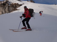Aufstieg: Sehr gut zum Steigen. Pulverschnee, und im Südhang sulzige Aufstiegsspur.