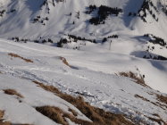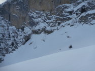30 Minuten später haben drei andere Tourenfahrer bei der Skiabfahrt, diesen Hang ausgelöst, und die Nassschnee-Lawine ist über die Felsstufe gerutscht! Siehe Foto Nr.10. Ich will hier aber betonnen, das ich auch Fehler mache, und mir sowas passieren kann! Wichtig ist dabei, immer daraus zu lernen, und so kommt man weiter!