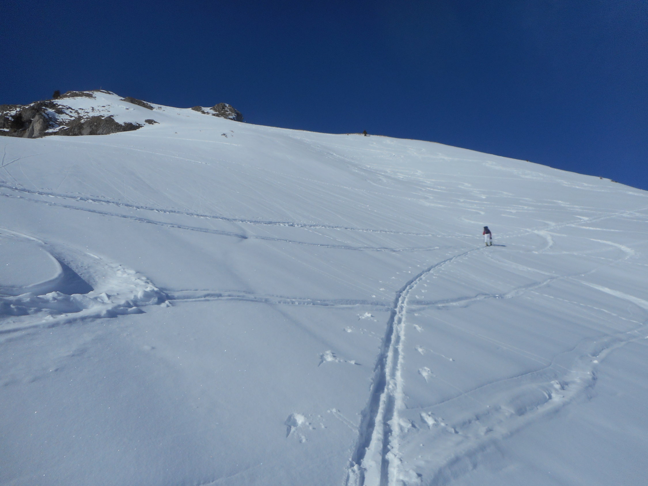 Im Südhang der Fochsenflue war der Schnee sulzig, aber gut zum Fahren.