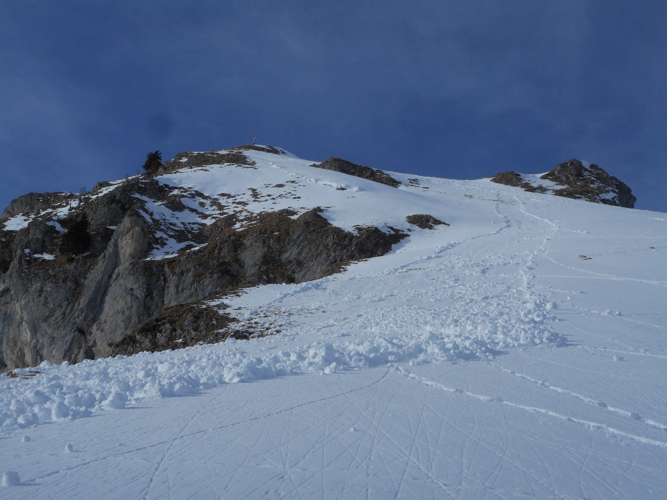 Drei Skitourenfahrer haben in der Südflanke von der Fochsenflue eine Nassschnee-Lawine ausgelöst. Siehe Fotos!