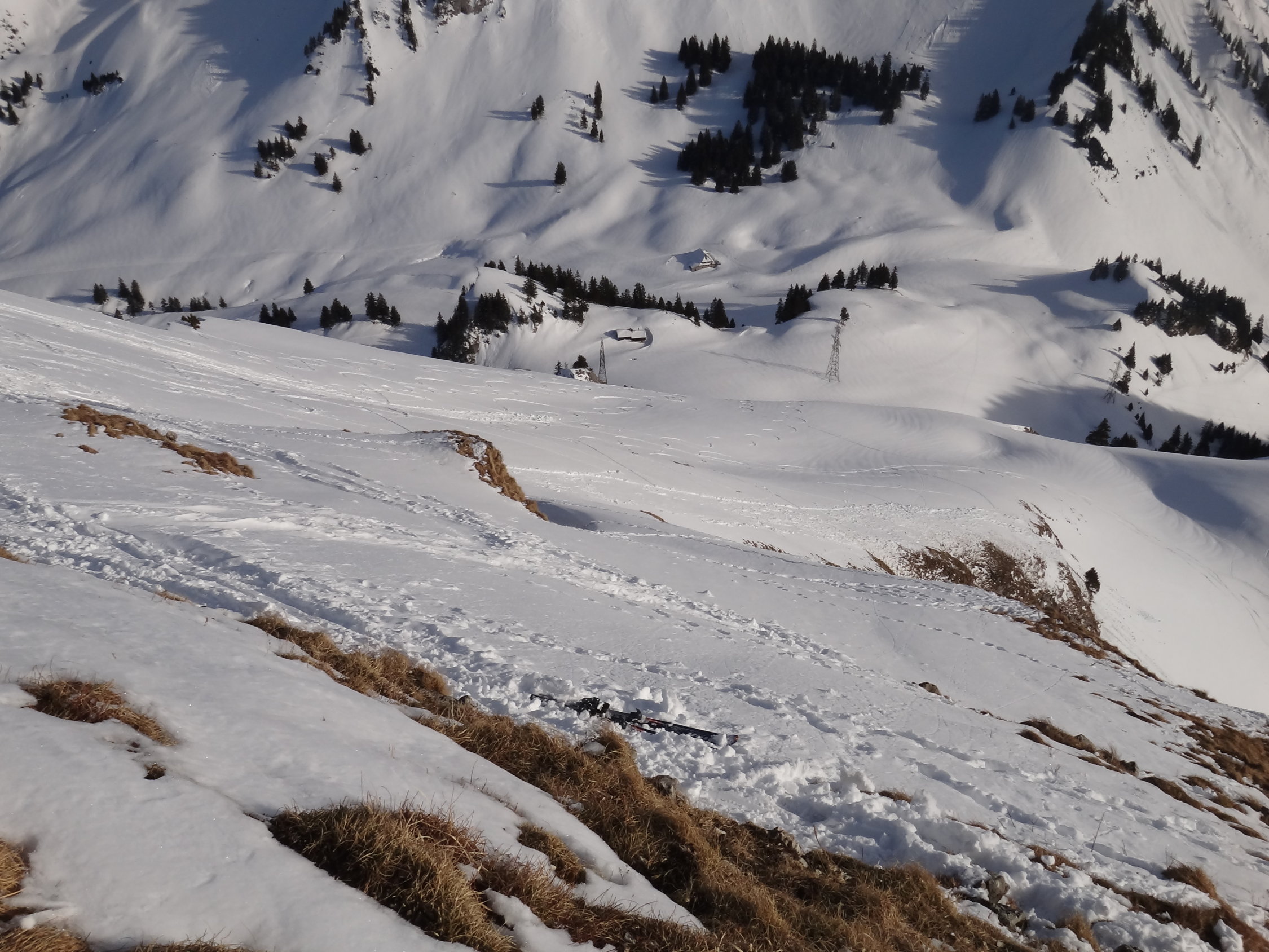 Wir sind mit dem Bodenlift hochgefahren, um auf die Untere Euschelalp zu gelangen. Daher zu Beginn der Skitour diese Abfahrts Bilder.