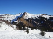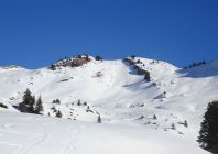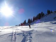 Zustieg zum Gapfohler Fürkele über die Piste, daneben aper, zumindest im unteren Bereich. Skiweg nicht mehr möglich. Pistenaufstieg hart, aber griffig, morgens noch nicht viel Gegenverkehr. Nach der kurzen Abfahrt dann in weichem Schnee zum Gipfel.