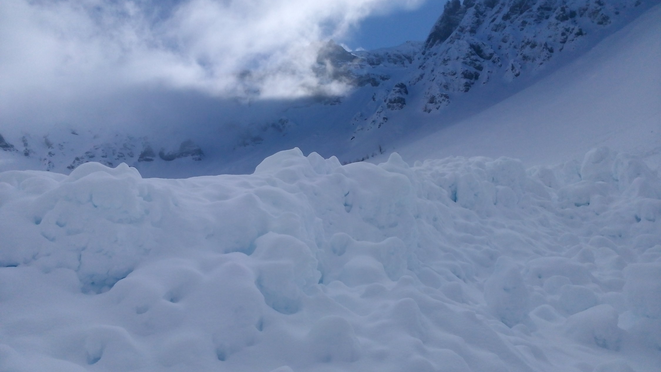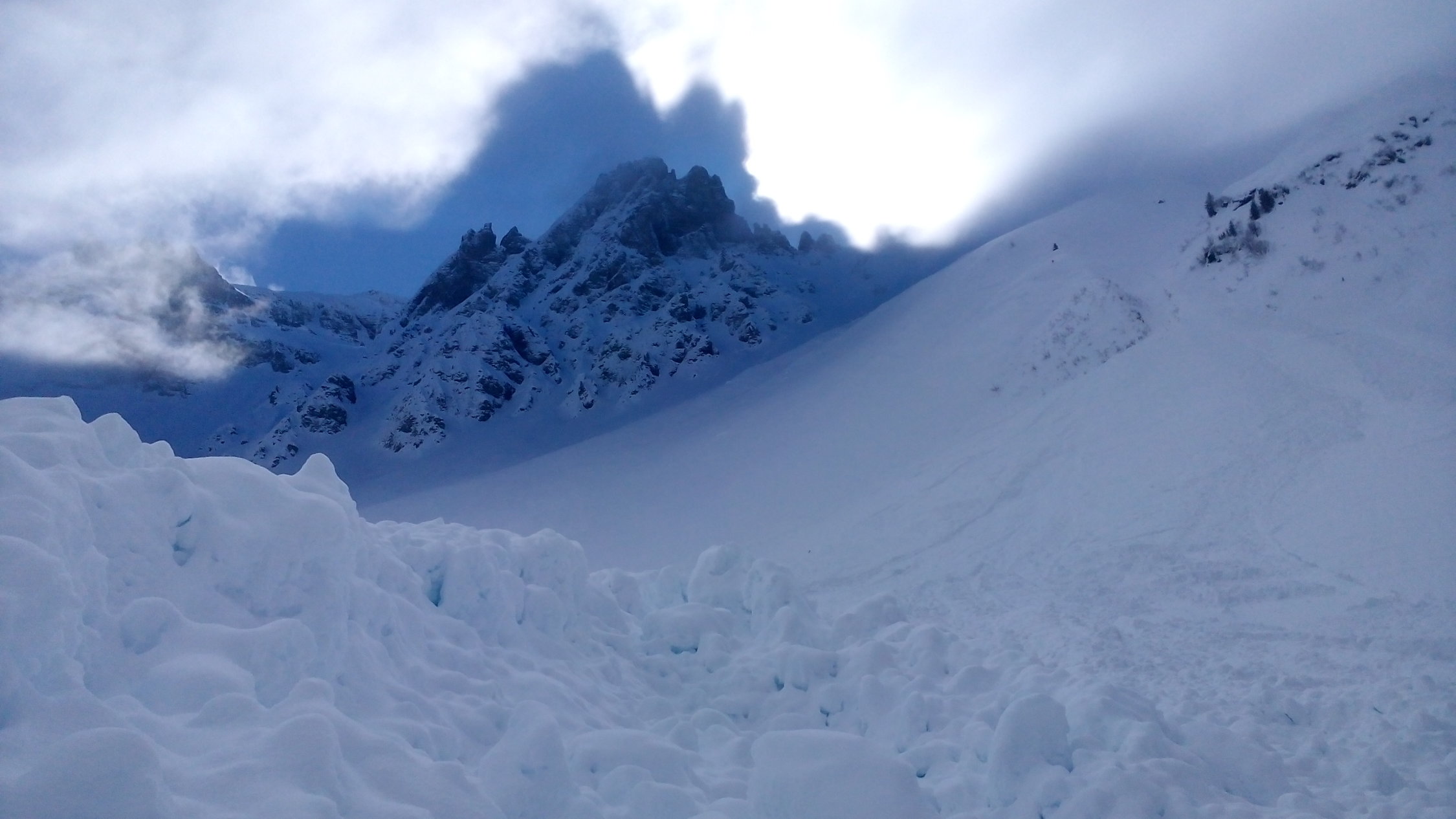 Beeindruckend die alten Lawinenkegel bis runter ins Tal.