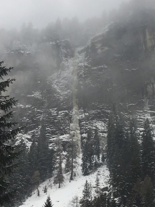 Wir gönnten uns die Brückenkerze, die so viel Eis aufweist wie selten. Diese spektakuläre Route wird fast ausschliesslich im Top Rope geklettert, was übrigens immer noch eine ordentliche Portion Mut und Schmalz erfordert. Der Zustieg von 5Meter mit einem soliden Standplatz an der Leitplanke sucht seinesgleichen. Vergleiche mit Nuit Blanche in Argentiere drängen sich auf.