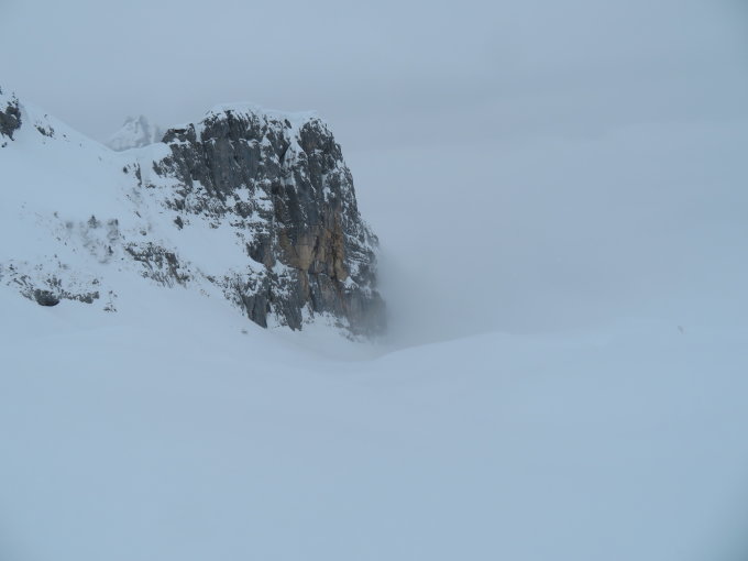 Schwalbenkopf Abfahrt ist gut eingeschneit. War halt teilweise neblig wie in der ganzen Umgebung.