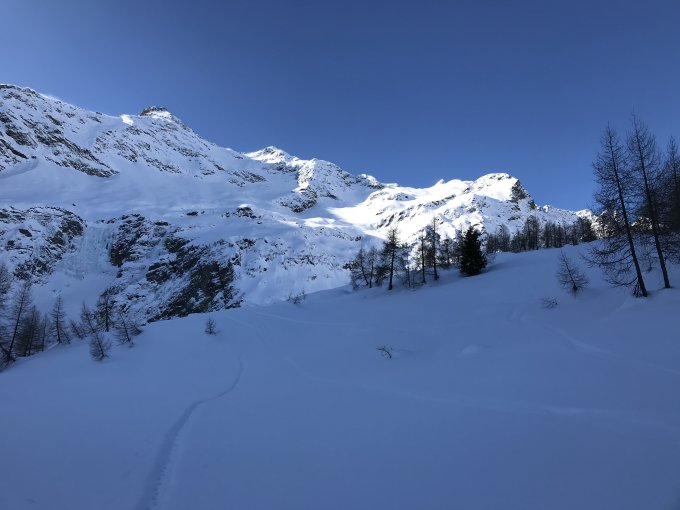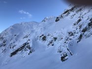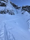Super Spur. Couloir sehr guter Trittschnee. 20-30cm Pulver von oben bis unten. Heute ca. 20 Personen auf dem Gipfel. Jetzt schon recht zerfahren. Weg läuft super raus. Kalt und starker Wind auf dem Gipfel.