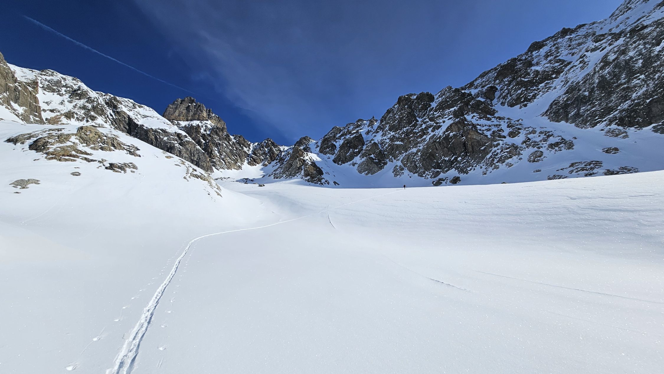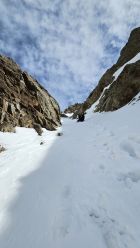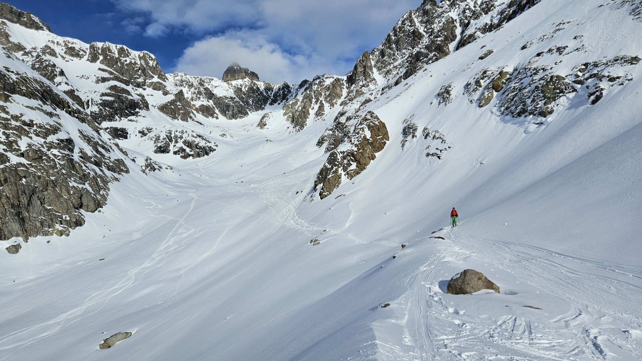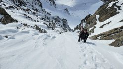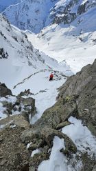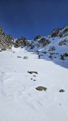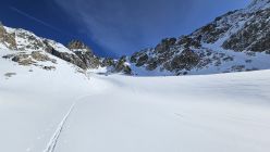Sustenpassstraße bis hinter Färnigen geräumt. Nach Wissgand breite Spur vorhanden. Viele Tourengeher Richtung Bärenhorn. Dannach Aufstieg nördlich des Rossbach auf guter Spur bis Juzfad weiter dann im Pulver auf fester Unterlage gespurt bis Couloir. Durch das Couloir zu Fuß mit wechselnden Schneefestigkeiten bis unteren Gipfelhang des Zwächten. Dann problemlos zum Gipfel. Abfahrt über die Rampe, die bereits viele Abfahrten gesehen hat, der Schnee ist hart aber griffig. Weiter im Pulver bis Jutzfad und über Rossplang in zunehmend festerem Schnee zurück zur Passstraße.
