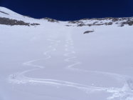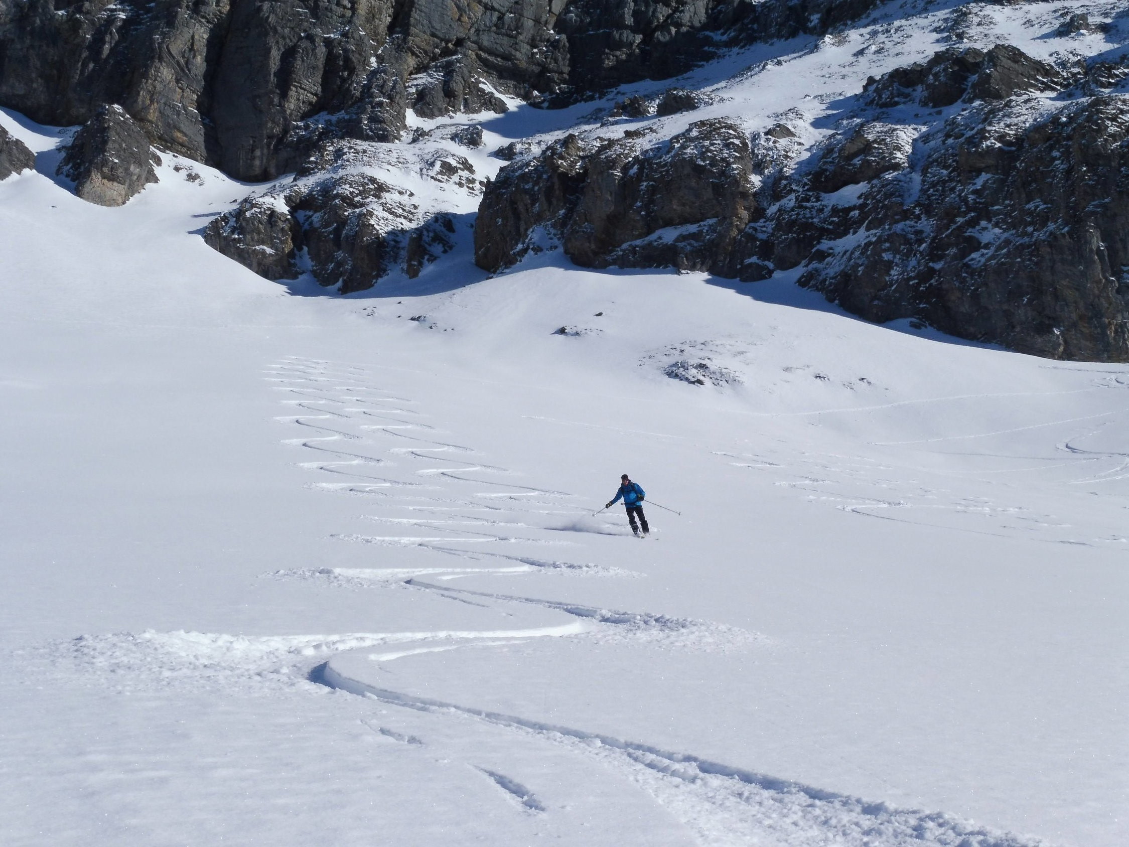 Insgesamt sehr gute Verhältnisse auf der ganzen Tour. Im Bereich Bösenboden grosse Lawinenkegel. Dank vorhandener guter Spur konnten diese problemlos begangen werden. Ab Firnbäch war der Wind am Arbeiten. Beim Punkt 2695 gilt es die Wechte zu beachten. Sehr schöne Hänge mit gut gesetztem Pulverschnee angetroffen. Ausreichend Schnee bis zurück zum Parkplatz.