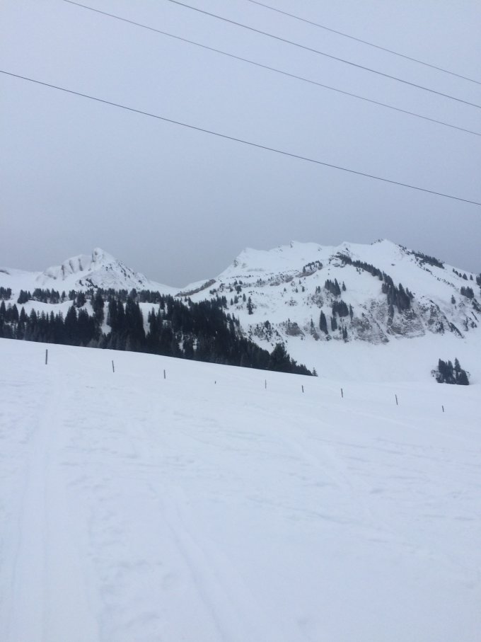Die ganze Route ist ab Parkplatz eingeschneit. Im unter und mittleren Teil 5-10cm Pulverschnee auf harter Unterlage. Ab Alp Ällgäulu immer mehr vom Wind bearbeiteter Schnee.
