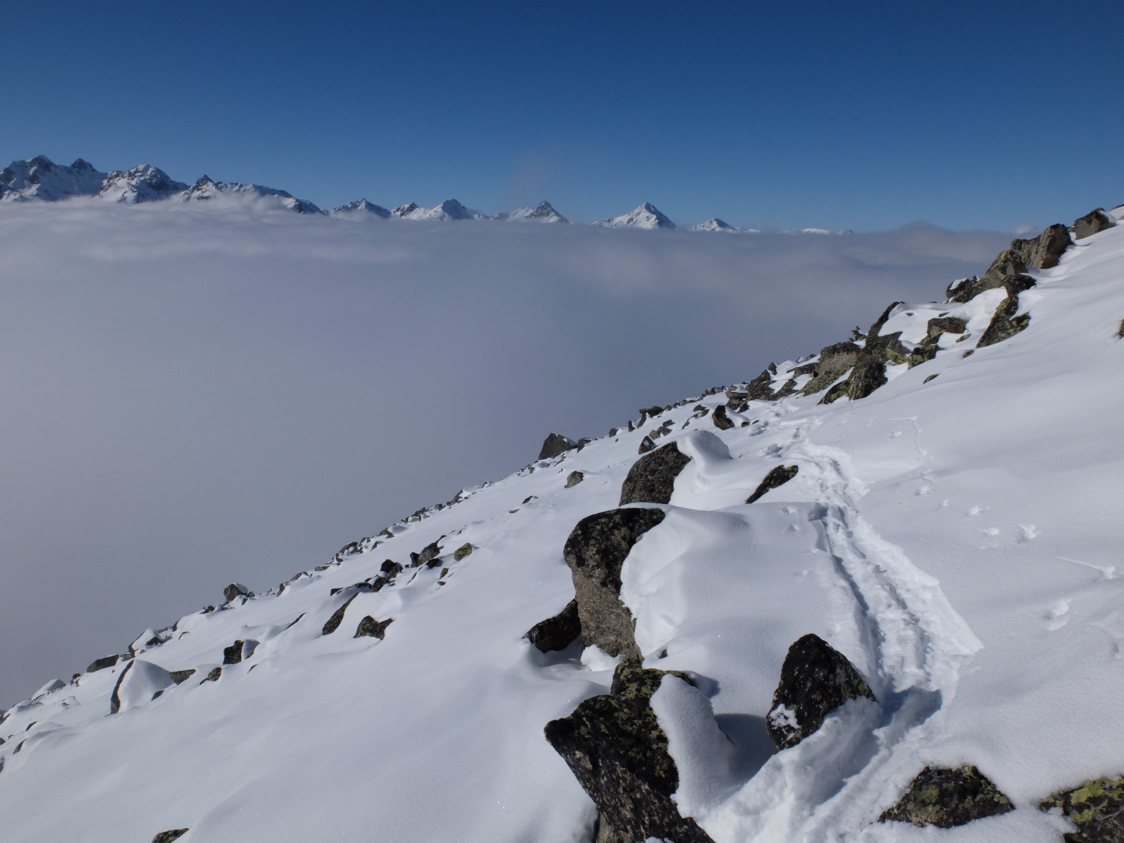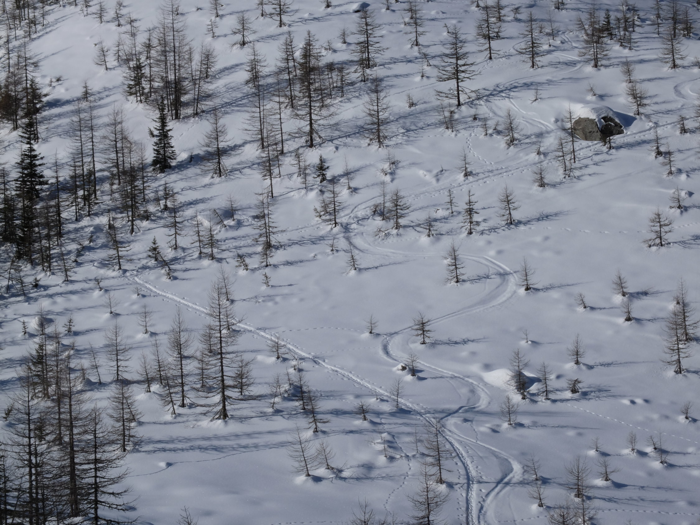 Den ganzen Tag über haben wir keinen Türeler gesehen, lediglich wenige Abfahrsspuren der Offpisten-Skier.