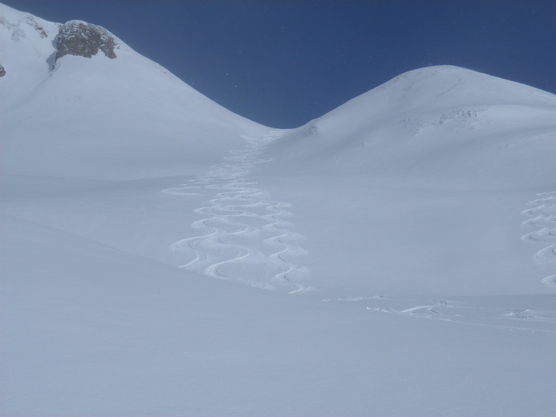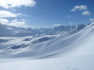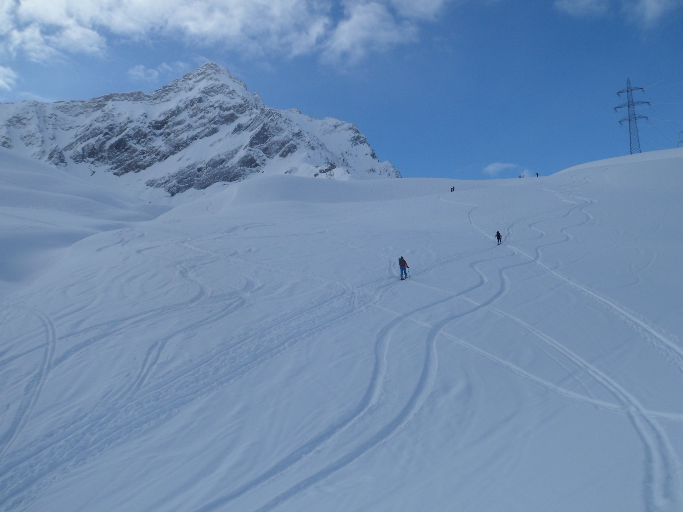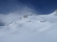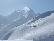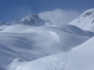 Dank Schneeverwehungen findet man sehr viel Pulver