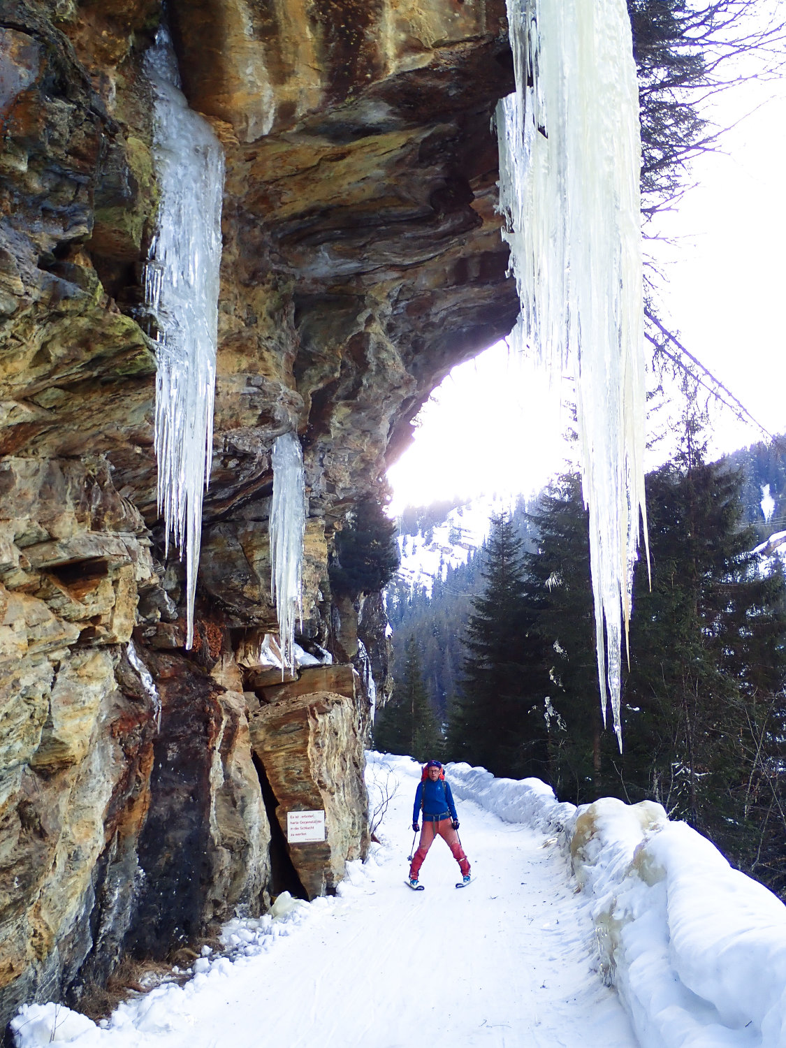 Strasse von Zervreila nach Vals dünn schneebedeckt, teils eisig, leider mit etwas Streu-Split, kein Vergnügen, aber fahrbar.