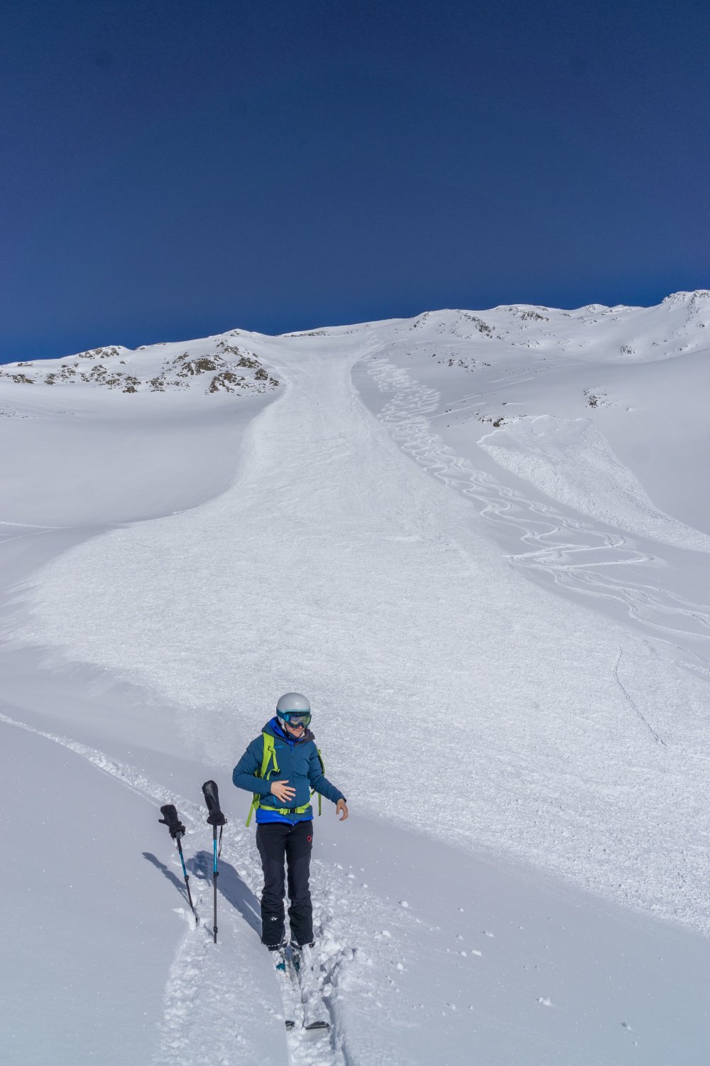 Heute sind 4 Tourengeher in der Flanke zum Kreuzjochkogel aufgestiegen (der dieses Jahr mal genug Schnee hat) und haben auf halber Höhe abgebrochen. Bei der Abfahrt in dem SW Hang lösten die vorderen 2 eine Lawine aus. Diese riss ca 100m über ihrem Einfahrtspunkt mit einer Mächtigkeit von ca 10cm (also der frisch gefallene Schnee) auf einer Breite von ca 200m an. Die zwei Tourengeher konnten aus der Lawine zur Seite ausfahren. Bei der weiteren Abfahrt lösten sie durch Fernauslösung (keine Sekundärlawine!) ein weiteres deutlich kleineres Brett aus. Ein weiter unten aufsteigender Tourengeher rief zur Sicherheit die Alpinpolizei. Diese traf einige Zeit später ein. Da wir weiter unten auf den Tourengeher trafen und mitbekamen, dass dieser per Telefon Bescheid geben wollte dass nichts passiert ist habe ich es nicht mehr für nötig gehalten selbst bei der Alpinpolizei anzurufen. Im Nachhinein wäre das jedoch sicher besser gewesen und sie hätten sich einen Heliflug sparen können (man weiß ja nie ob der nicht gerade wo anders dringender gebraucht wird). Deshalb: An die Tourengeher die die Lawine ausgelöst haben (die in dem Moment verständlicherweise den Kopf wo anders hatten), an mich selber fürs nächste mal und an alle anderen Tourengeher die das hier lesen: Wenn ihr einen Lawinenabgang mit Personenbeteiligung seht bei dem ihr euch sicher sein könnt (!!!) das nichts passiert ist, ruft bitte trotzdem bei der Alpinpolizei/Bergwacht an und gebt Bescheid!