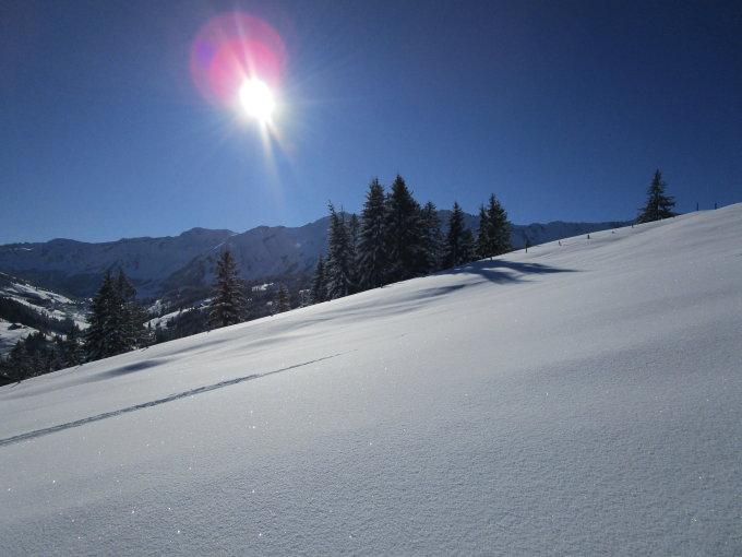 Heute war die Abfahrt vom Hengst manchmal zu wenig steil wegen des vielen Neuschnee.