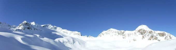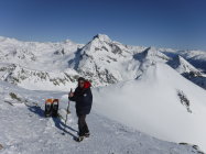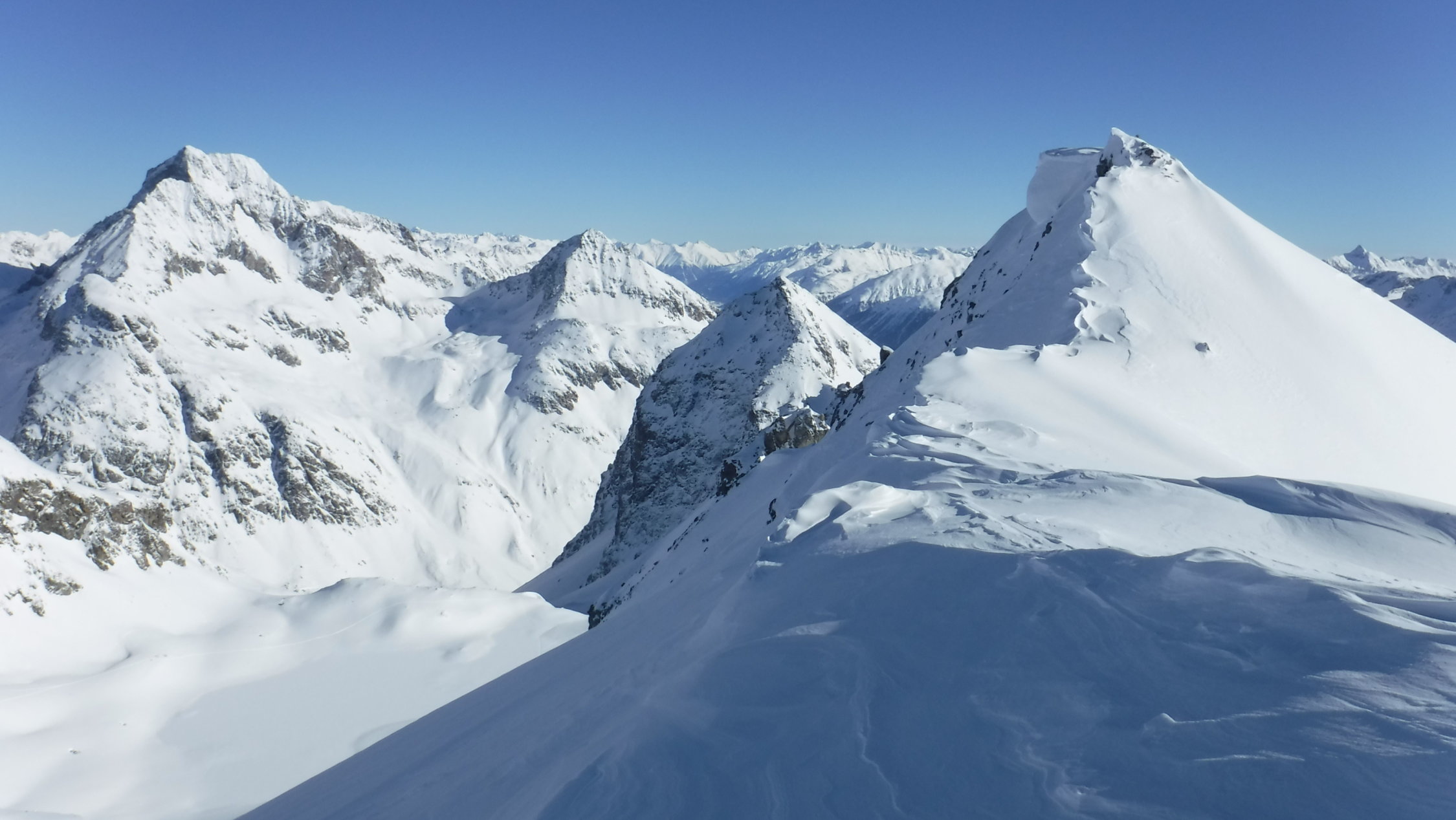 Der Vorgipfel des Piz Lagrev ist ein Klassiker für Ski-Tüerler. Keine 1000 Hm, nordexponierte Hänge und eine bombastische Fernsicht (unter wolkenlosem Himmel). Deswegen ist man selten alleine oben. Zumindest bis zum Laufgerätedepot am Vorgipfel P 3084.