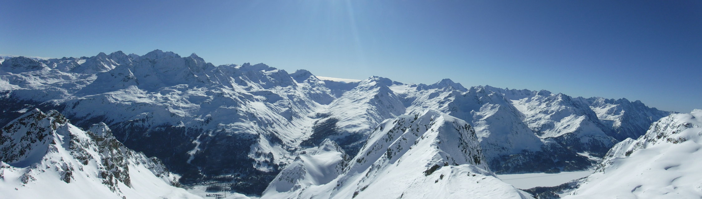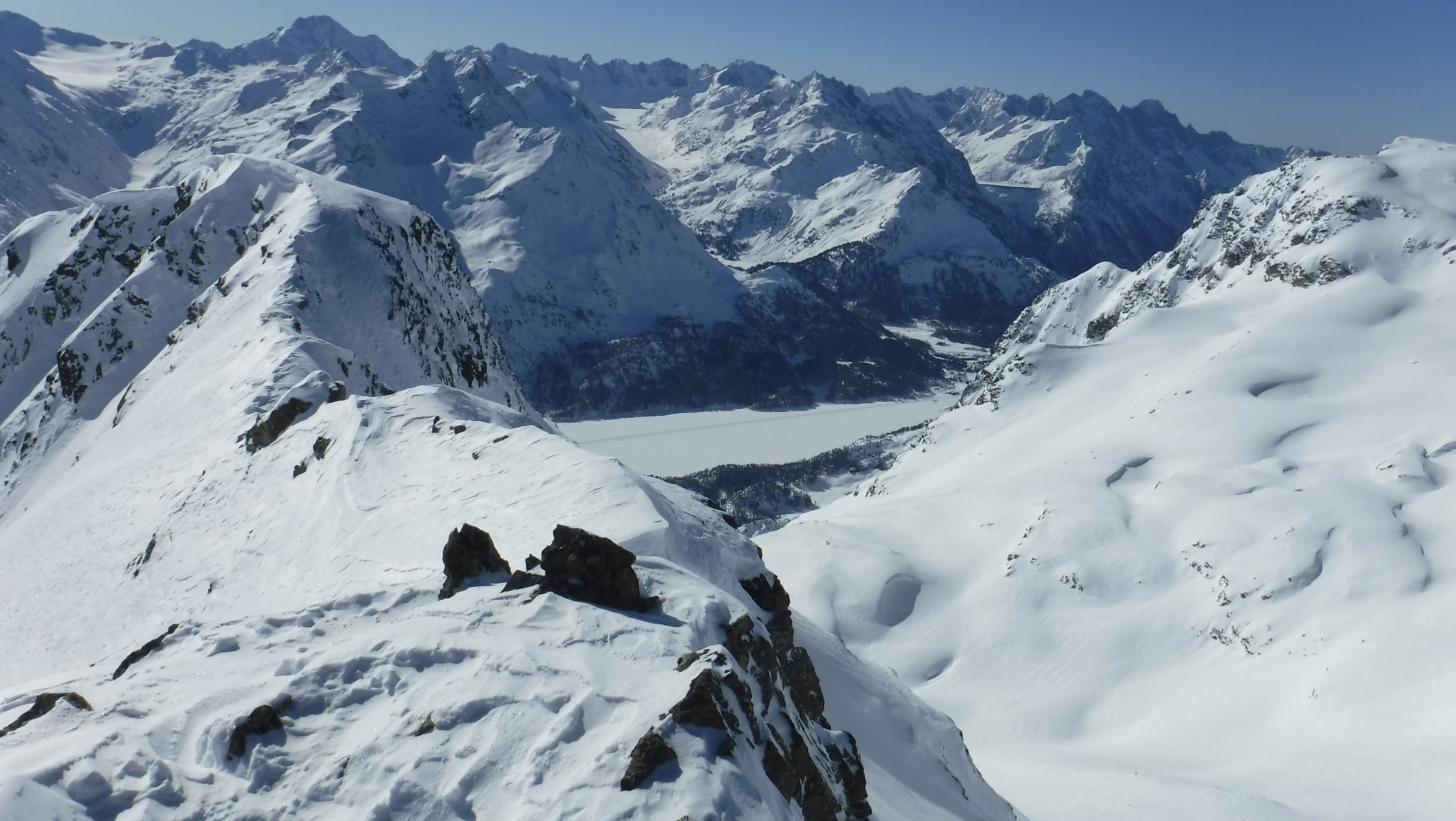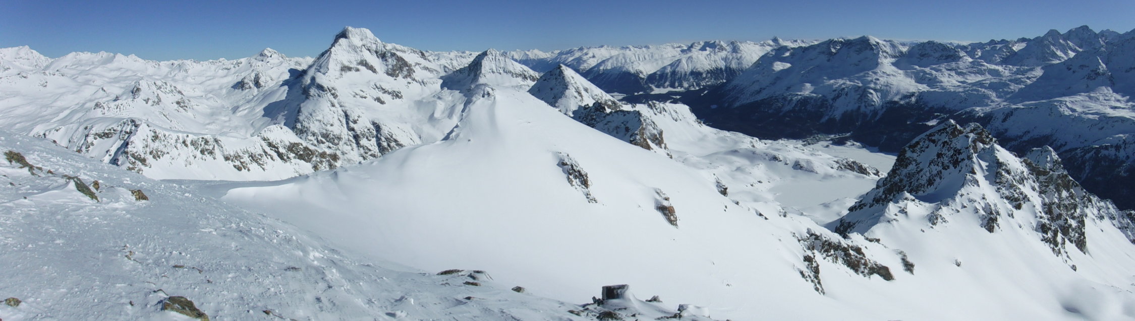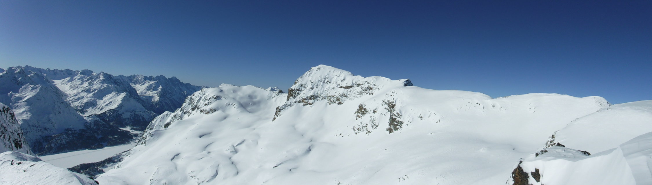 Danke an die beiden Skitüerler aus Grischa für das Gipfelfoto, welche zeitglich mit mir vom Parkplatz starteten und zeitnah am Gipfel ankamen, nachdem sie den Lej Lagrev westlich in 2 Varianten auf längerem Weg umrundeten.