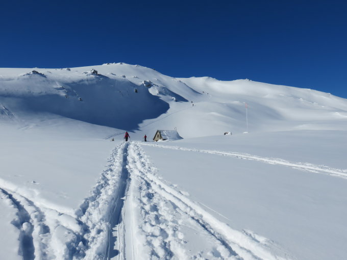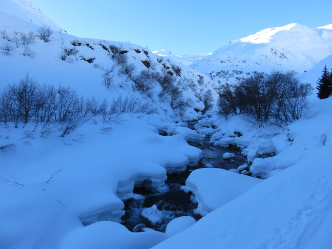 Es liegt sehr viel Schnee. Wetterabhängig.