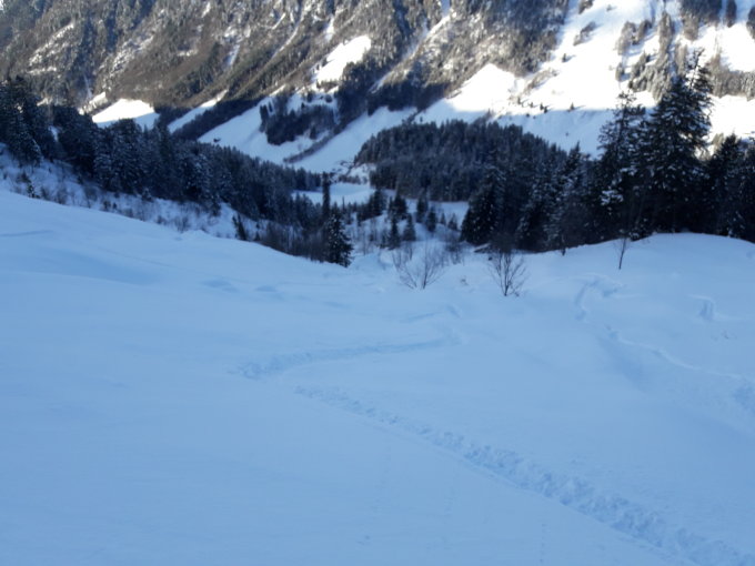 Die Hänge im oberen Bereich sind noch nicht gekommen, auch hier waren die Tourengänger (und wir) entsprechend defensiv unterwegs. Low Risk but fun!