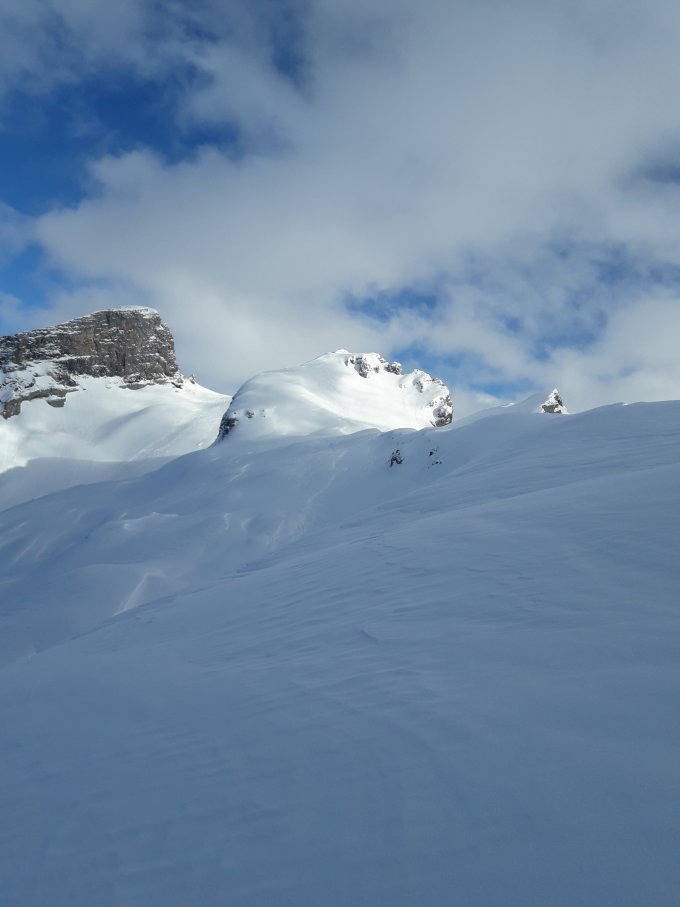 Schon bei der Talstation sehr viel Alt- und Neuschnee, oben noch mehr. Bestimmt 50 Pow von vorgestern noch in bester Konsistenz. Spuranlage auf den Hagelstock war defensiv. Abfahrt Rotenbalm von ca. 10 Tourengängern befahren. Auch hier top Verhältnisse bis ins Tal feinster Pulverschnee.